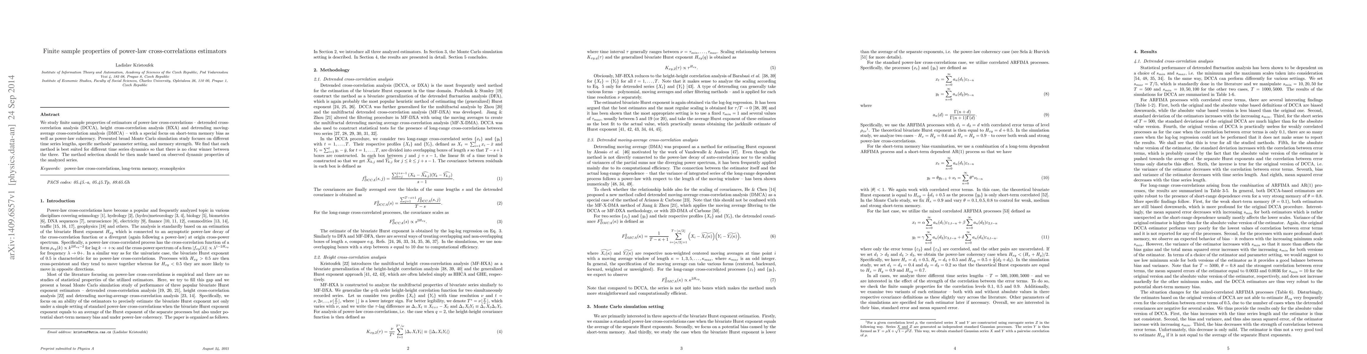 This paper examines the finite sample properties of three estimators for power-law cross-correlations, highlighting their suitability for different time series dynamics. The study finds no clear best method, suggesting that the choice should depend on the specific dynamic properties of the analyzed series.