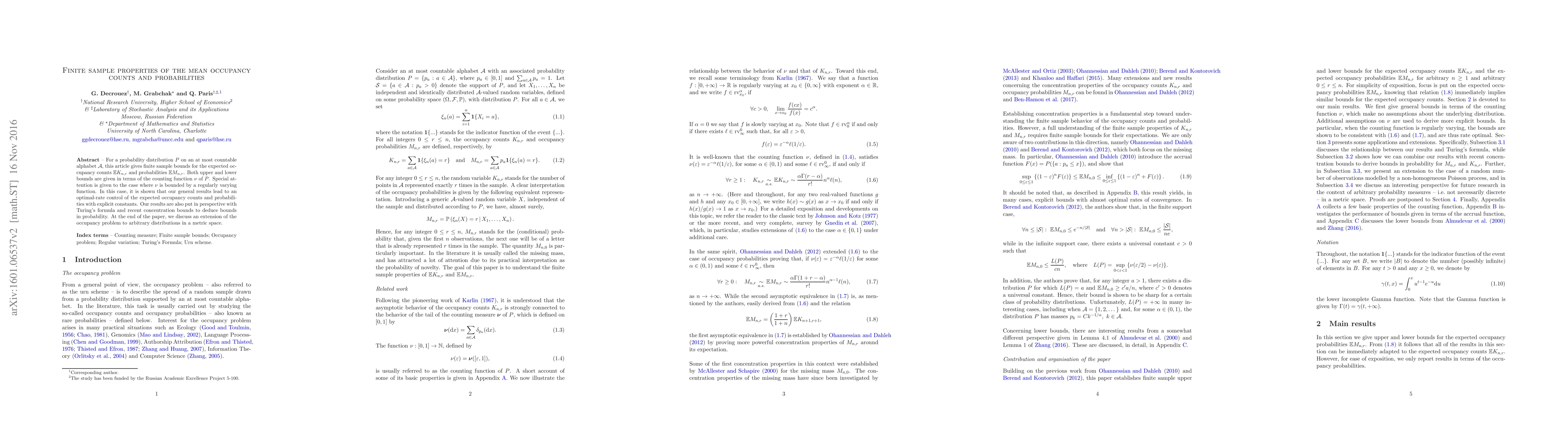 This paper provides finite sample bounds for expected occupancy counts and probabilities under a given probability distribution. It focuses on cases where the counting function is bounded by a regularly varying function, leading to optimal-rate control with explicit constants. The research also connects to Turing's formula and recent concentration bounds, and discusses extending the occupancy problem to arbitrary distributions in a metric space.