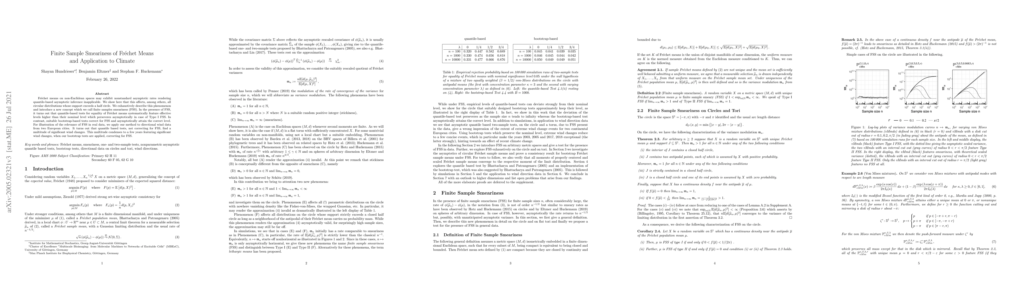 Fr\'echet means on non-Euclidean spaces may exhibit nonstandard asymptotic rates rendering quantile-based asymptotic inference inapplicable. We show here that this affects, among others, all circular distributions whose support exceeds a half circle. We exhaustively describe this phenomenon and introduce a new concept which we call finite samples smeariness (FSS). In the presence of FSS, it turns out that quantile-based tests for equality of Fr\'echet means systematically feature effective levels higher than their nominal level which perseveres asymptotically in case of Type I FSS. In contrast, suitable bootstrap-based tests correct for FSS and asymptotically attain the correct level. For illustration of the relevance of FSS in real data, we apply our method to directional wind data from two European cities. It turns out that quantile based tests, not correcting for FSS, find a multitude of significant wind changes. This multitude condenses to a few years featuring significant wind changes, when our bootstrap tests are applied, correcting for FSS.