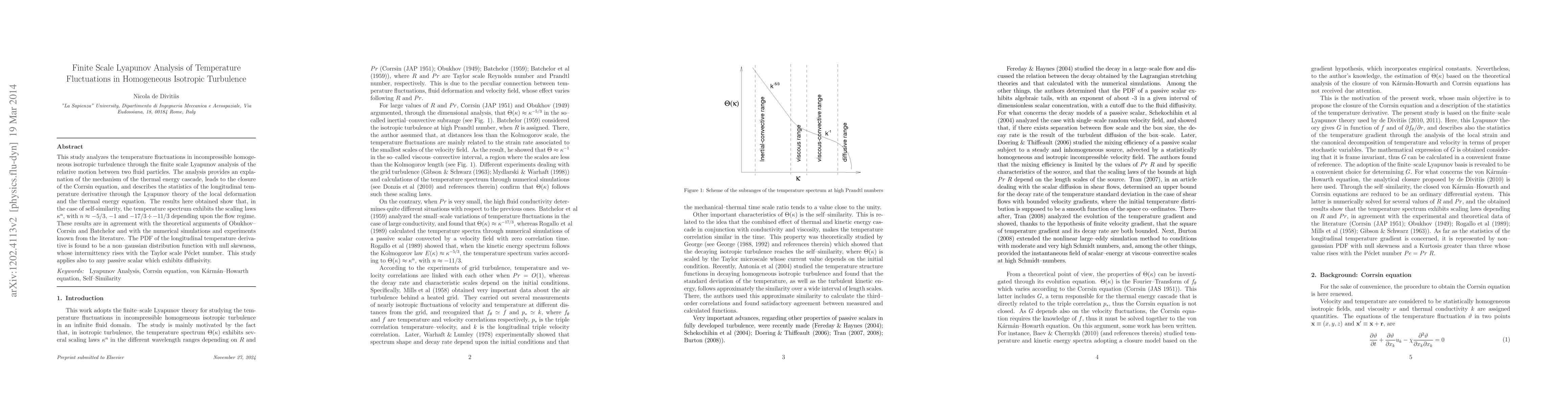 The study employs finite scale Lyapunov analysis to investigate temperature fluctuations in homogeneous isotropic turbulence, leading to the closure of the Corrsin equation and statistical characterization of temperature fluctuations.