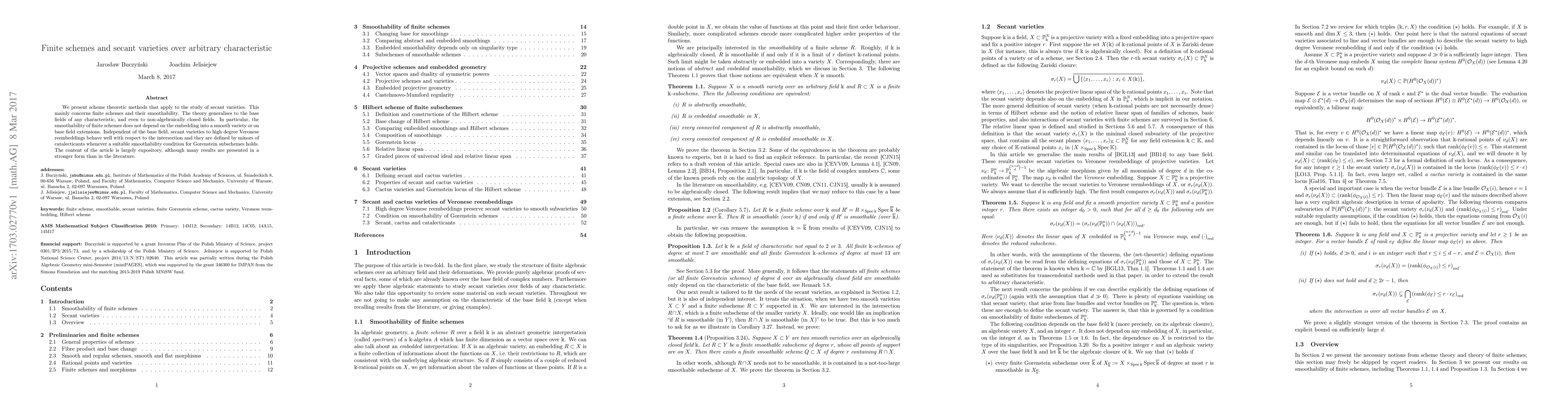 This paper introduces scheme-theoretic methods for studying secant varieties, focusing on finite schemes and their smoothability across fields of any characteristic. It highlights that smoothability of finite schemes is independent of embeddings or field extensions, and discusses the behavior of high-degree Veronese reembeddings' secant varieties in relation to intersections and catalecticants under certain conditions.