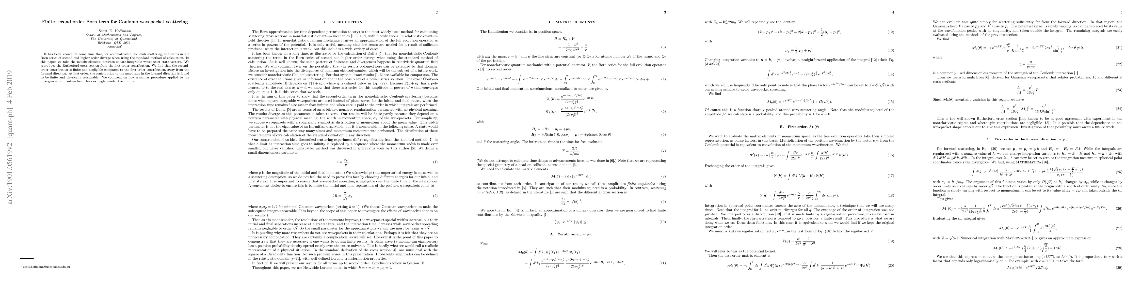 It has been known for some time that, for nonrelativistic Coulomb scattering, the terms in the Born series of second and higher order diverge when using the standard method of calculation. In this paper we take the matrix elements between square-integrable wavepacket state vectors. We reproduce the Rutherford cross section from the first-order contribution. We find that the second-order contribution is finite and negligible compared to the first-order contribution, away from the forward direction. At first order, the contribution to the amplitude in the forward direction is found to be finite and physically reasonable. We comment on how a similar procedure applied to the divergences of quantum field theories might render them finite.