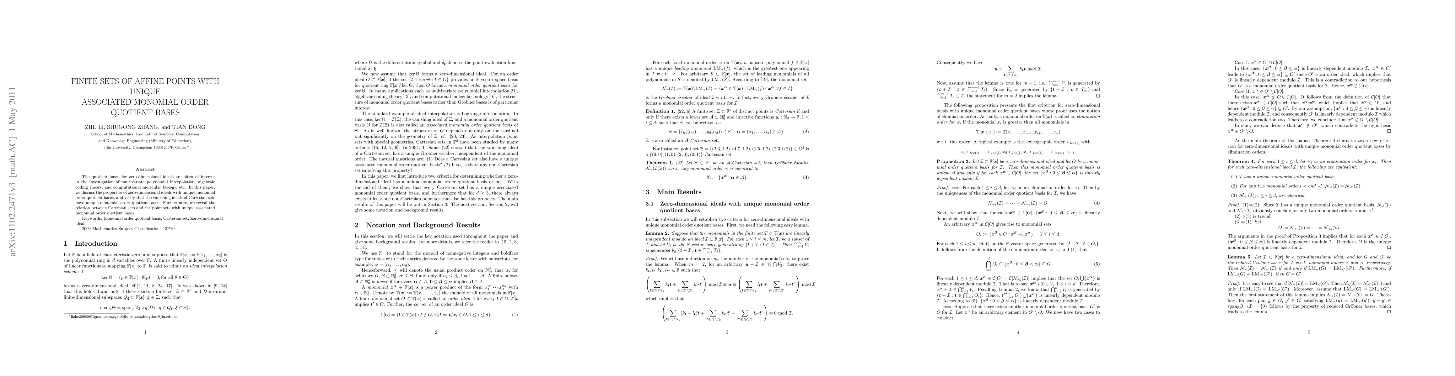 The quotient bases for zero-dimensional ideals are often of interest in the investigation of multivariate polynomial interpolation, algebraic coding theory, and computational molecular biology, etc. In this paper, we discuss the properties of zero-dimensional ideals with unique monomial quotient bases, and verify that the vanishing ideals of Cartesian sets have unique monomial quotient bases. Furthermore, we reveal the relation between Cartesian sets and the point sets with unique associated monomial quotient bases.
