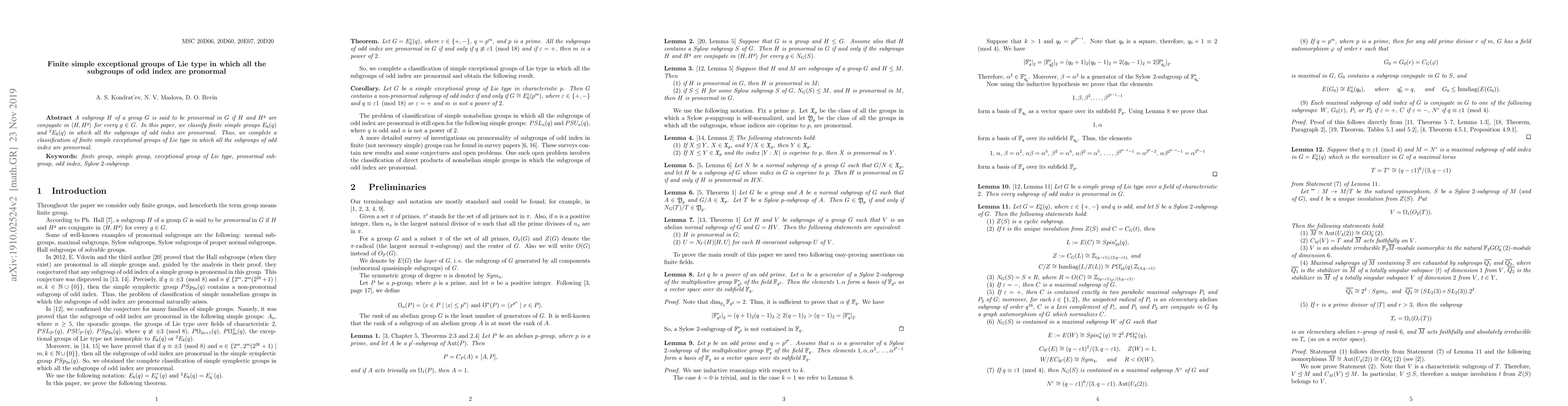 This paper classifies finite simple exceptional groups of Lie type where subgroups of odd index are pronormal, completing a classification for these groups.
