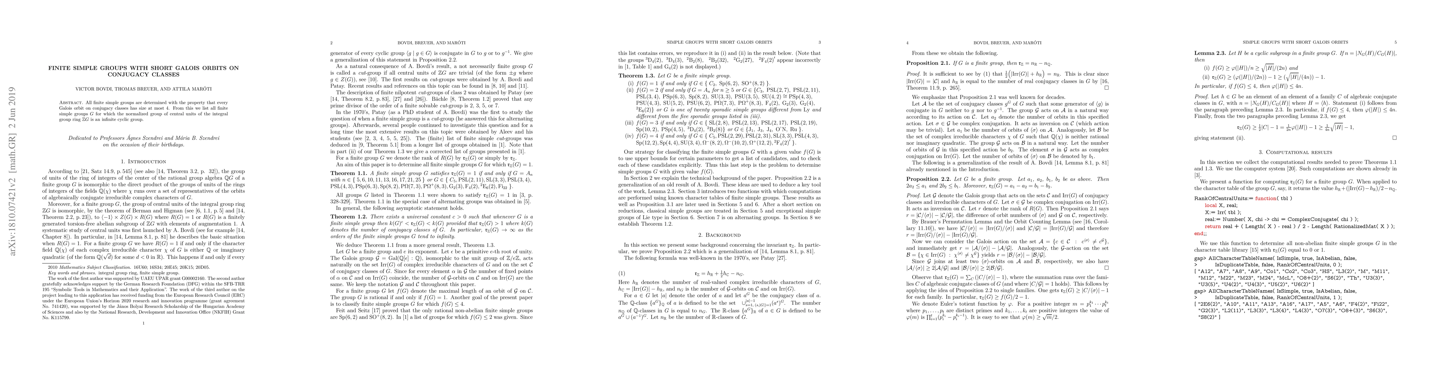 This paper identifies finite simple groups where every Galois orbit on conjugacy classes has size no greater than 4, and it concludes that for such groups, the normalized group of central units of the integral group ring ZG is an infinite cyclic group.
