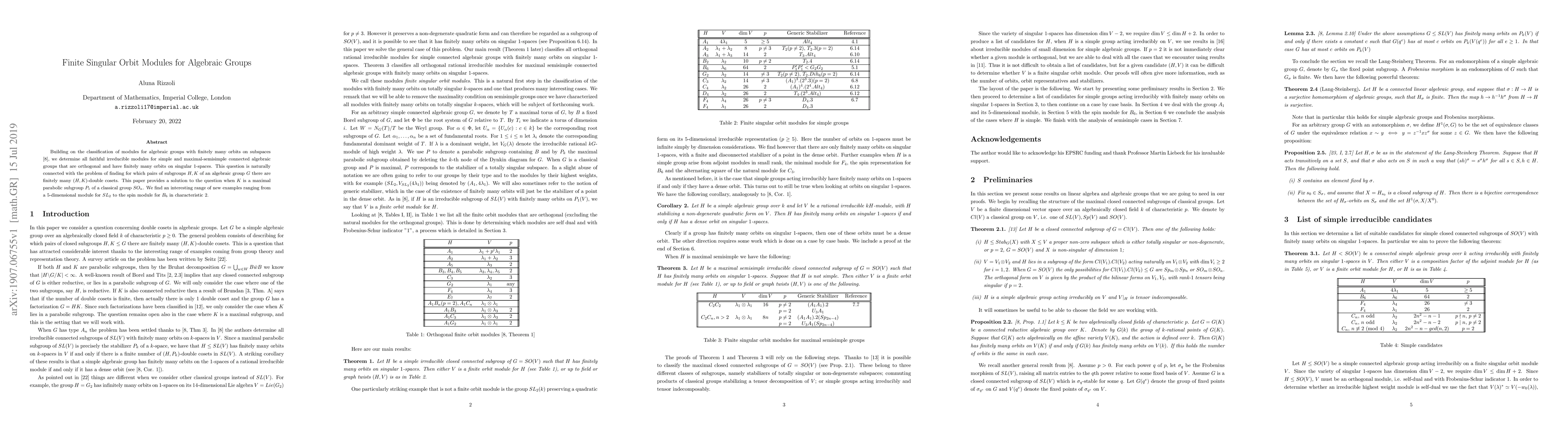 Researchers classify faithful irreducible modules for simple and maximal-semisimple algebraic groups with finitely many orbits on singular 1-spaces, providing new examples and insights into the problem of finitely many (H,K)-double cosets.