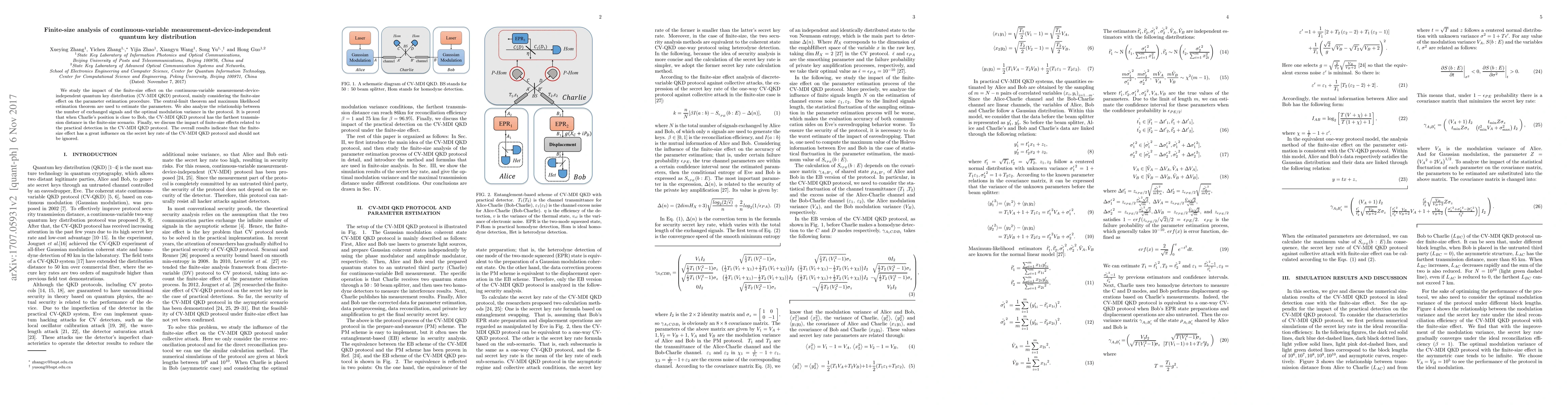 This paper investigates the finite-size effects on continuous-variable measurement-device-independent quantum key distribution (CV-MDI QKD), focusing on parameter estimation and modulation variance. It concludes that the protocol's transmission distance is maximized when the relay's position is near the receiver, and highlights the significant impact of finite-size effects on the secret key rate.