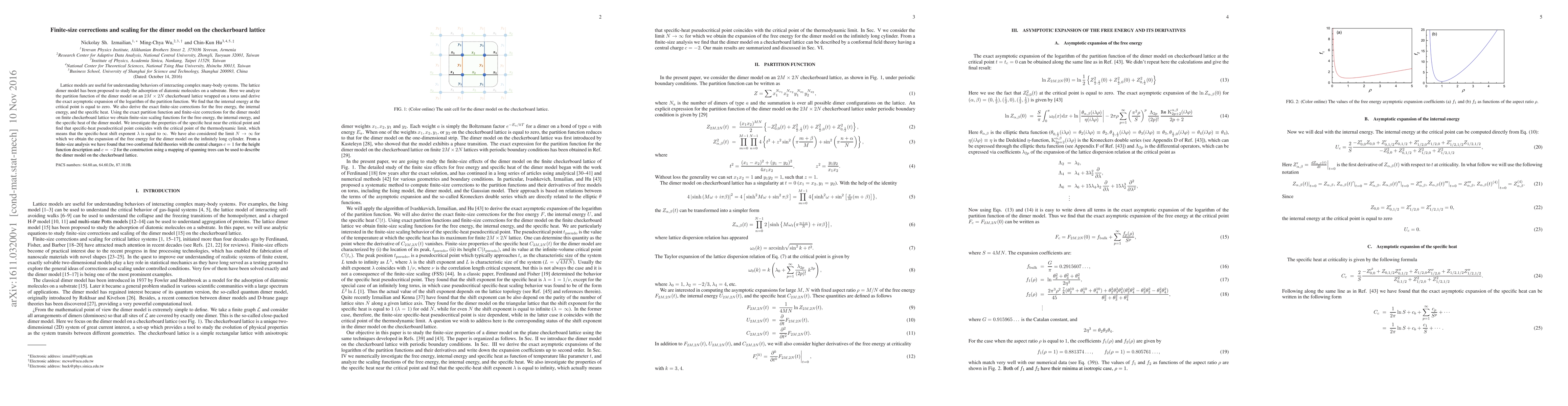 This paper analyzes the partition function of the dimer model on a finite checkerboard lattice, deriving exact asymptotic expansions and finite-size corrections. It finds that the internal energy at the critical point is zero and identifies the specific-heat pseudocritical point as coinciding with the thermodynamic critical point, indicating a specific-heat shift exponent of infinity.