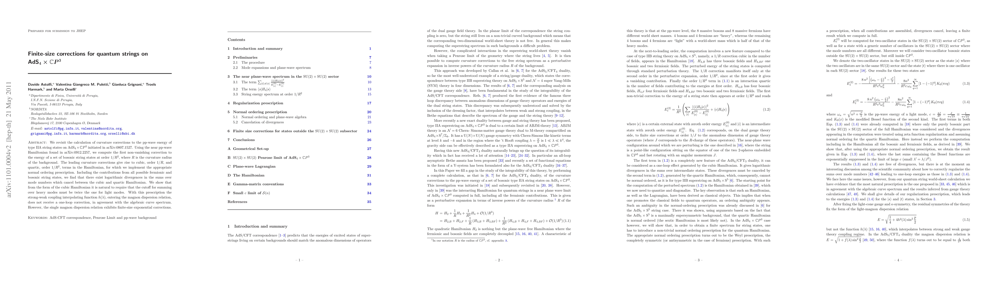 This paper computes finite-size corrections for quantum strings on AdS_4 x CP^3, finding leading curvature corrections that introduce cubic, linear, and quartic terms in the Hamiltonian. The study resolves logarithmic divergences and shows that the strong-weak coupling function remains uncorrected at one-loop, while the single magnon dispersion relation shows finite-size exponential corrections.
