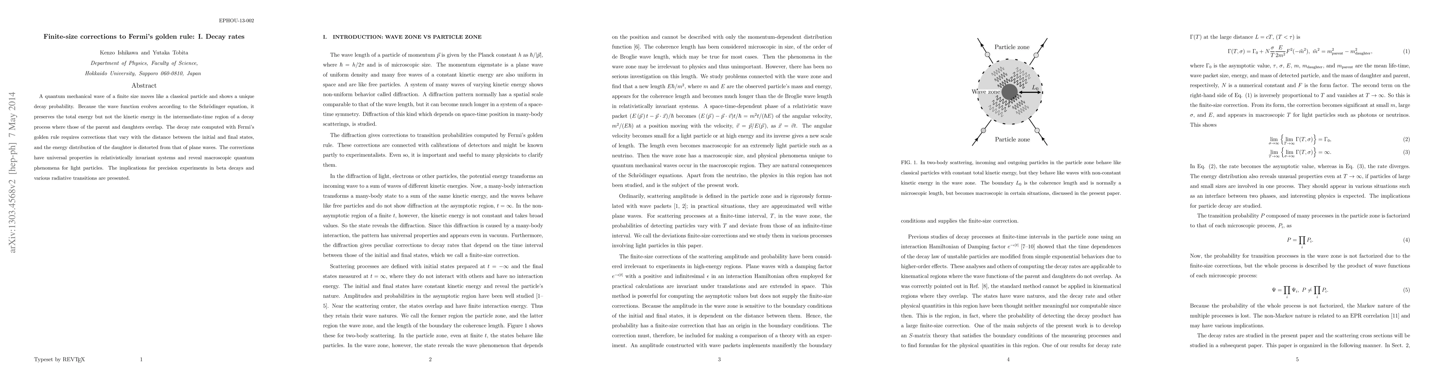 A quantum mechanical wave of a finite size moves like a classical particle and shows a unique decay probability. Because the wave function evolves according to the Schr\"{o}dinger equation, it preserves the total energy but not the kinetic energy in the intermediate-time region of a decay process where those of the parent and daughters overlap. The decay rate computed with Fermi's golden rule requires corrections that vary with the distance between the initial and final states, and the energy distribution of the daughter is distorted from that of plane waves. The corrections have universal properties in relativistically invariant systems and reveal macroscopic quantum phenomena for light particles. The implications for precision experiments in beta decays and various radiative transitions are presented.