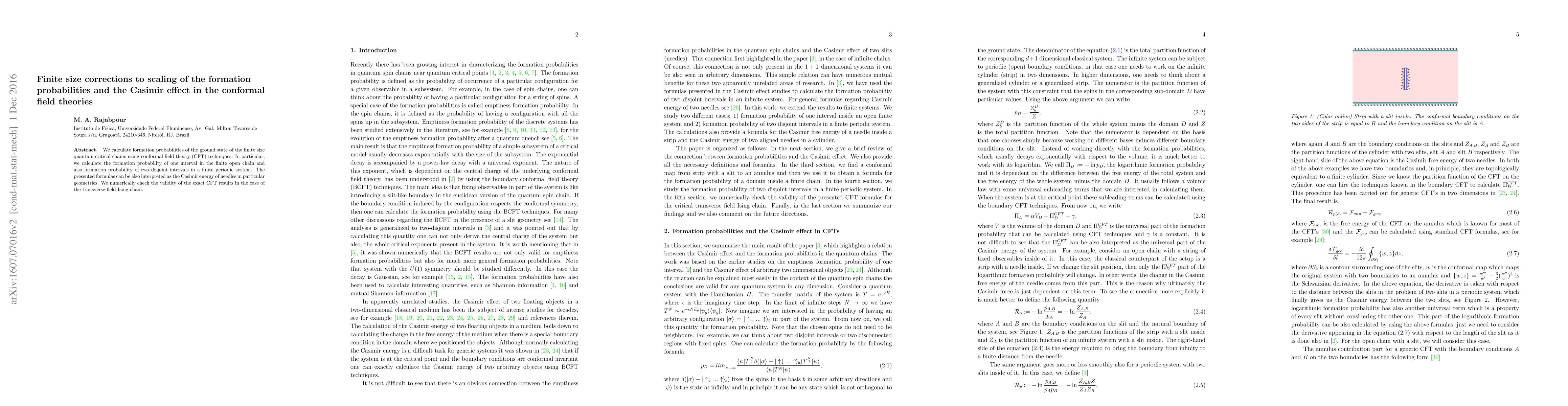 This paper calculates the formation probabilities of ground states in finite size quantum critical chains using conformal field theory, focusing on one and two disjoint intervals. The results are also interpreted as the Casimir energy in specific geometries, validated numerically for the transverse field Ising chain.