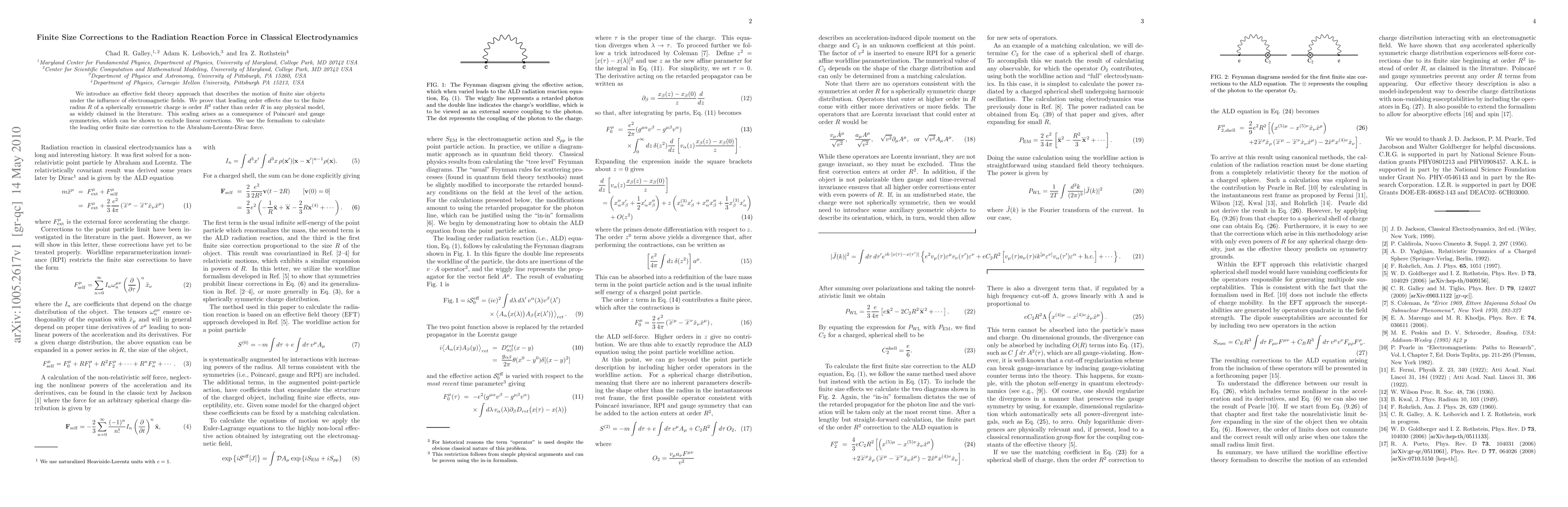 We introduce an effective field theory approach that describes the motion of finite size objects under the influence of electromagnetic fields. We prove that leading order effects due to the finite radius $R$ of a spherically symmetric charge is order $R^2$ rather than order $R$ in any physical model, as widely claimed in the literature. This scaling arises as a consequence of Poincar\'e and gauge symmetries, which can be shown to exclude linear corrections. We use the formalism to calculate the leading order finite size correction to the Abraham-Lorentz-Dirac force.