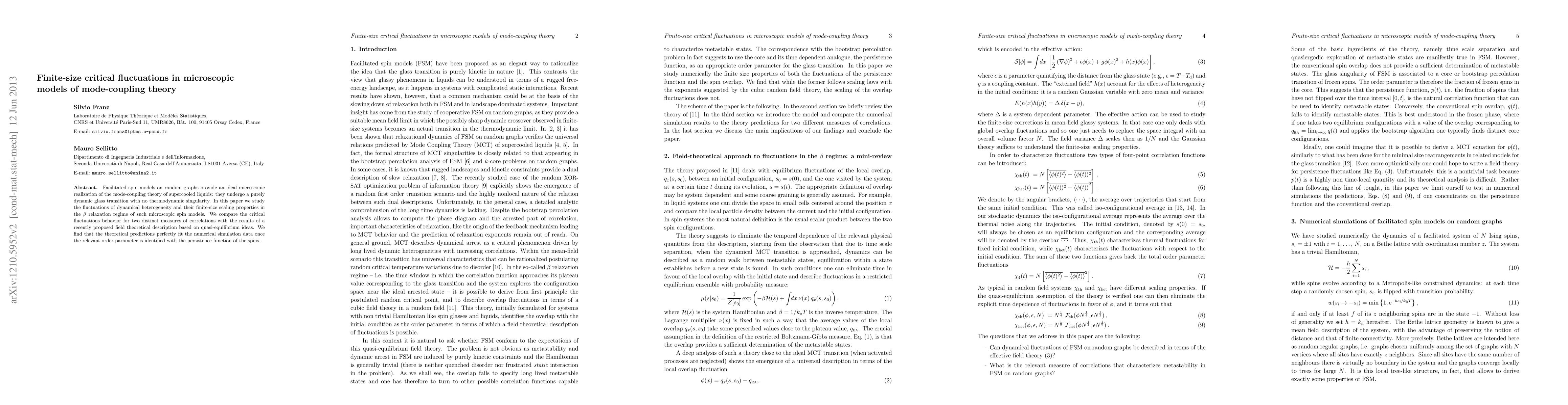 Facilitated spin models on random graphs provide an ideal microscopic realization of the mode-coupling theory of supercooled liquids: they undergo a purely dynamic glass transition with no thermodynamic singularity. In this paper we study the fluctuations of dynamical heterogeneity and their finite-size scaling properties in the beta relaxation regime of such microscopic spin models. We compare the critical fluctuations behavior for two distinct measures of correlations with the results of a recently proposed field theoretical description based on quasi-equilibrium ideas. We find that the theoretical predictions perfectly fit the numerical simulation data once the relevant order parameter is identified with the persistence function of the spins.