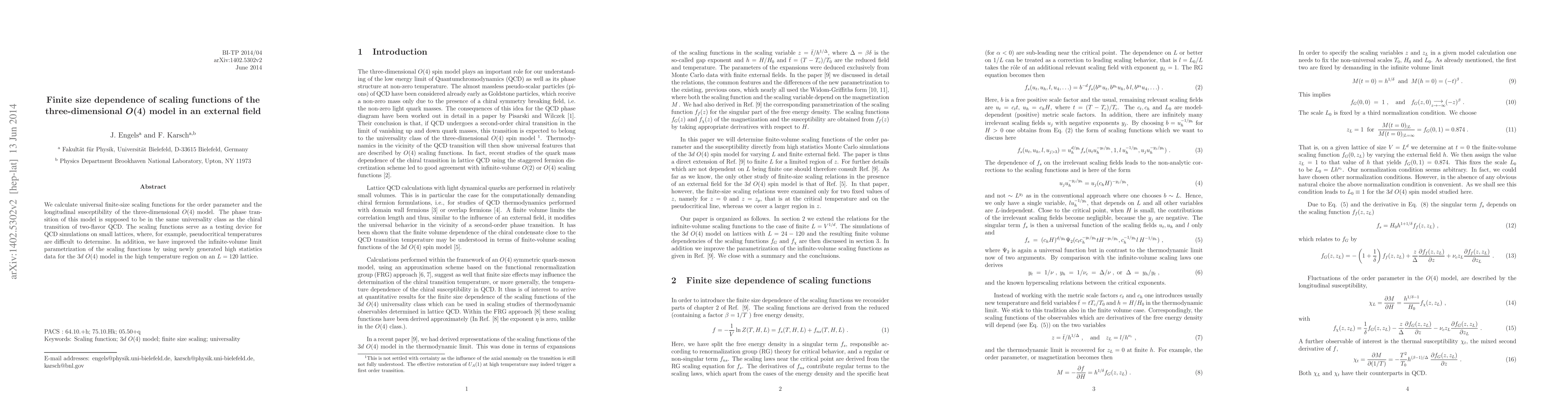 This paper calculates universal finite size scaling functions for the order parameter and susceptibility in the three-dimensional O(4) model, which shares the same universality class as the chiral transition in two-flavor QCD. The improved parametrization of these functions aids in testing QCD simulations on small lattices.