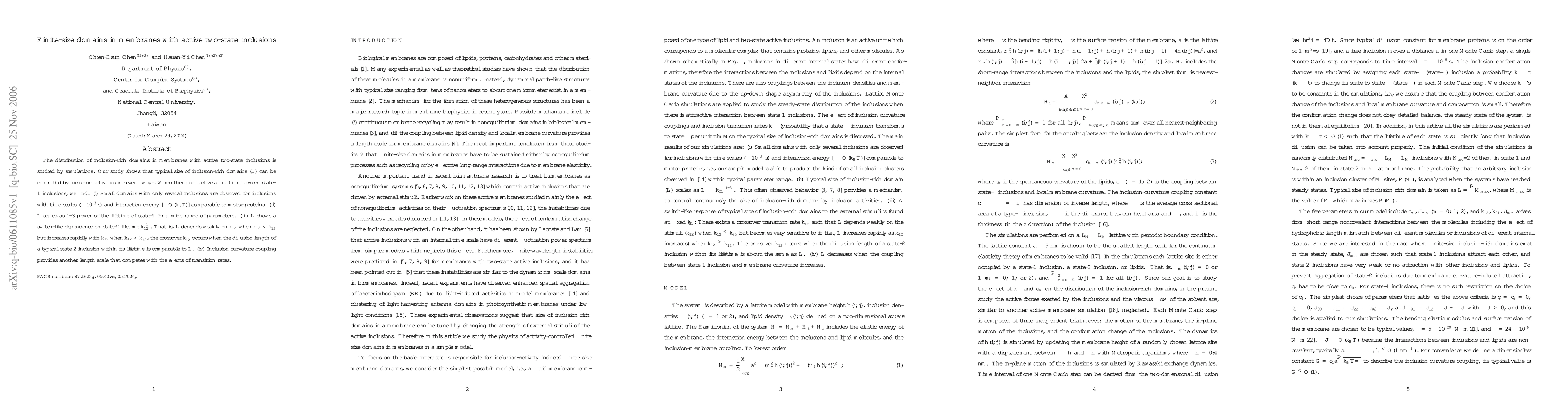 The distribution of inclusion-rich domains in membranes with active two-state inclusions is studied by simulations. Our study shows that typical size of inclusion-rich domains ($L$) can be controlled by inclusion activities in several ways. When there is effective attraction between state-1 inclusions, we find: (i) Small domains with only several inclusions are observed for inclusions with time scales ($\sim 10^{-3} {\rm s}$) and interaction energy [$\sim \mathcal{O}({\rm k_BT})$] comparable to motor proteins. (ii) $L$ scales as 1/3 power of the lifetime of state-1 for a wide range of parameters. (iii) $L$ shows a switch-like dependence on state-2 lifetime $k_{12}^{-1}$. That is, $L$ depends weakly on $k_{12}$ when $k_{12} < k_{12}^*$ but increases rapidly with $k_{12}$ when $k_{12} > k_{12}^*$, the crossover $k_{12}^*$ occurs when the diffusion length of a typical state-2 inclusion within its lifetime is comparable to $L$. (iv) Inclusion-curvature coupling provides another length scale that competes with the effects of transition rates.