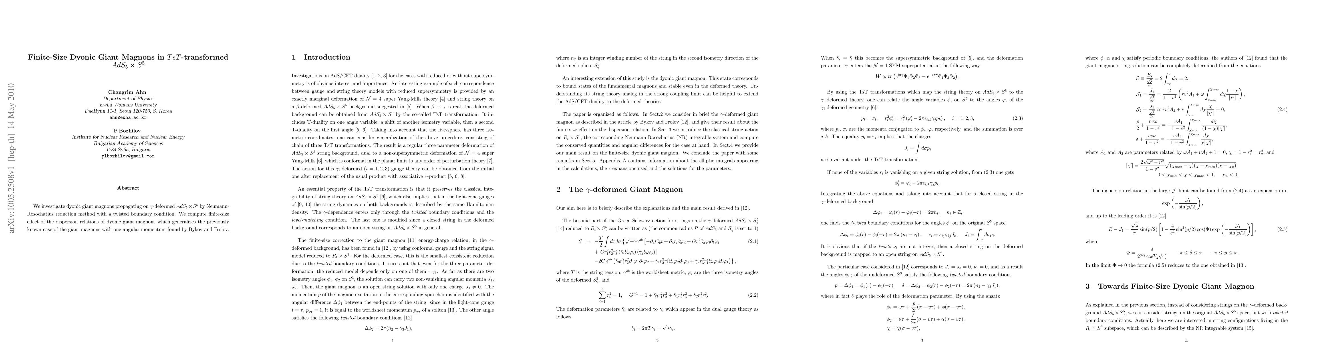 We investigate dyonic giant magnons propagating on $\gamma$-deformed $AdS_5\times S^5$ by Neumann-Rosochatius reduction method with a twisted boundary condition. We compute finite-size effect of the dispersion relations of dyonic giant magnons which generalizes the previously known case of the giant magnons with one angular momentum found by Bykov and Frolov.