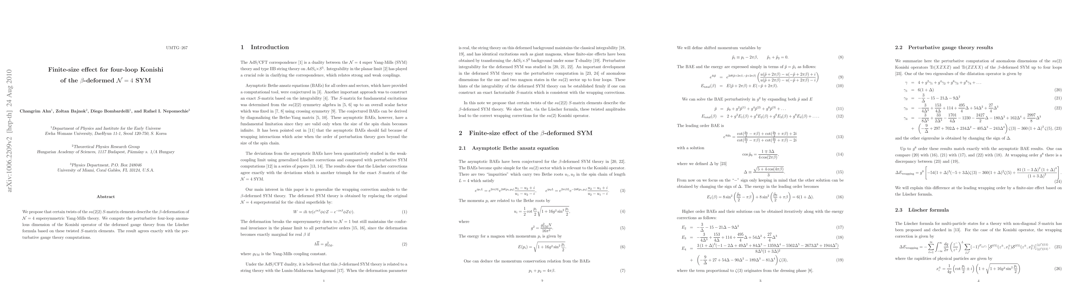 This paper proposes that su(2|2) S-matrix elements describe the beta-deformation of N=4 SYM and computes the four-loop anomalous dimension of the Konishi operator using the Luscher formula. The result matches perturbative gauge theory computations.
