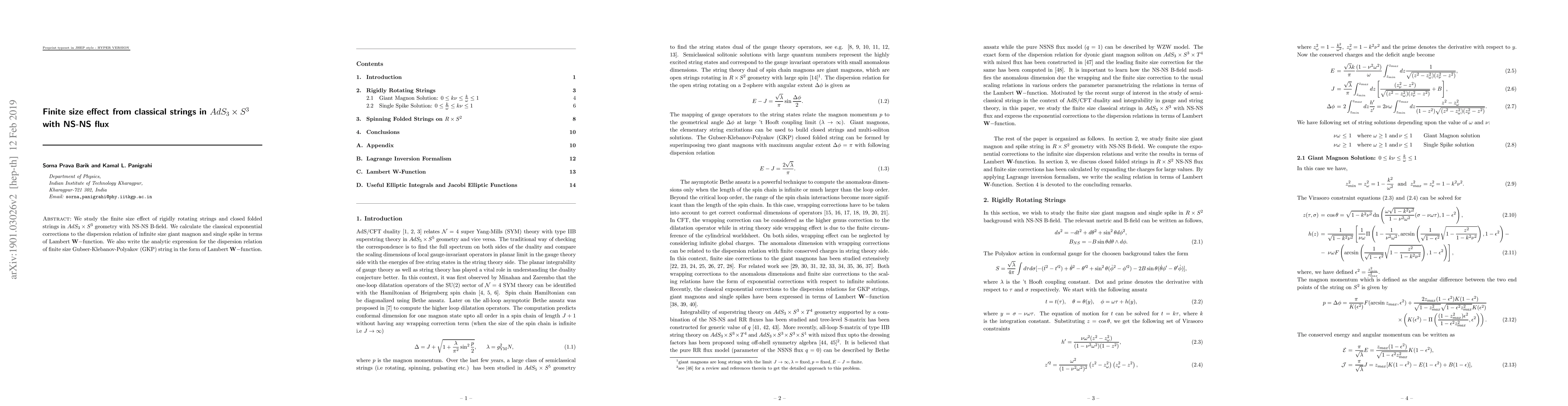 This paper investigates the finite size effects on classical strings in the $AdS_3 \times S^3$ background with NS-NS flux, calculating exponential corrections to the dispersion relations of giant magnon, single spike, and GKP strings using the Lambert W-function.