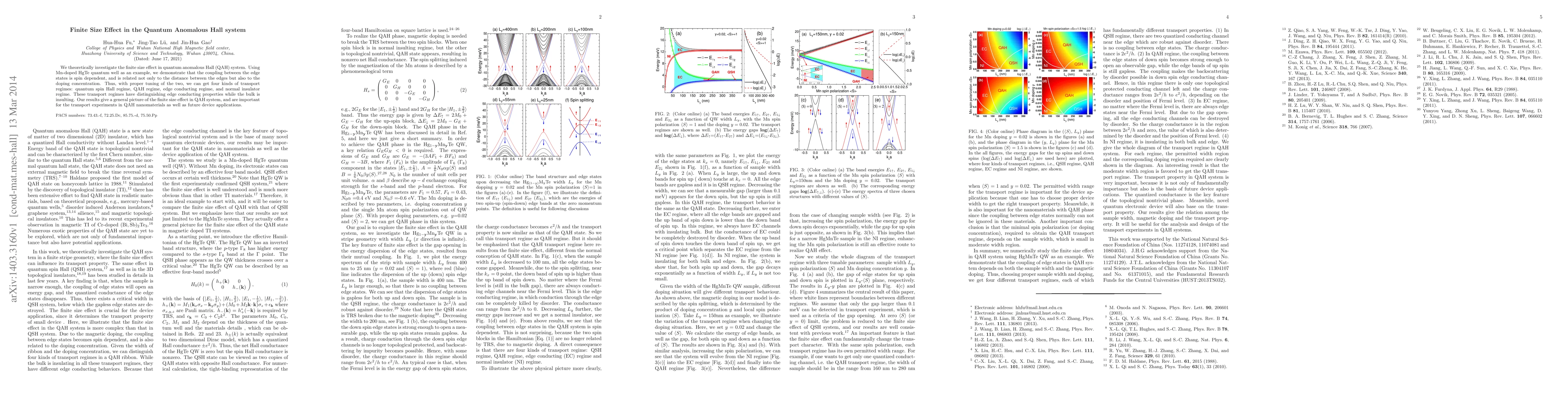 The study investigates finite size effects in quantum anomalous Hall systems, showing that edge states' coupling is spin-dependent and influenced by distance between edges and doping concentration, leading to various transport regimes with distinct edge properties.