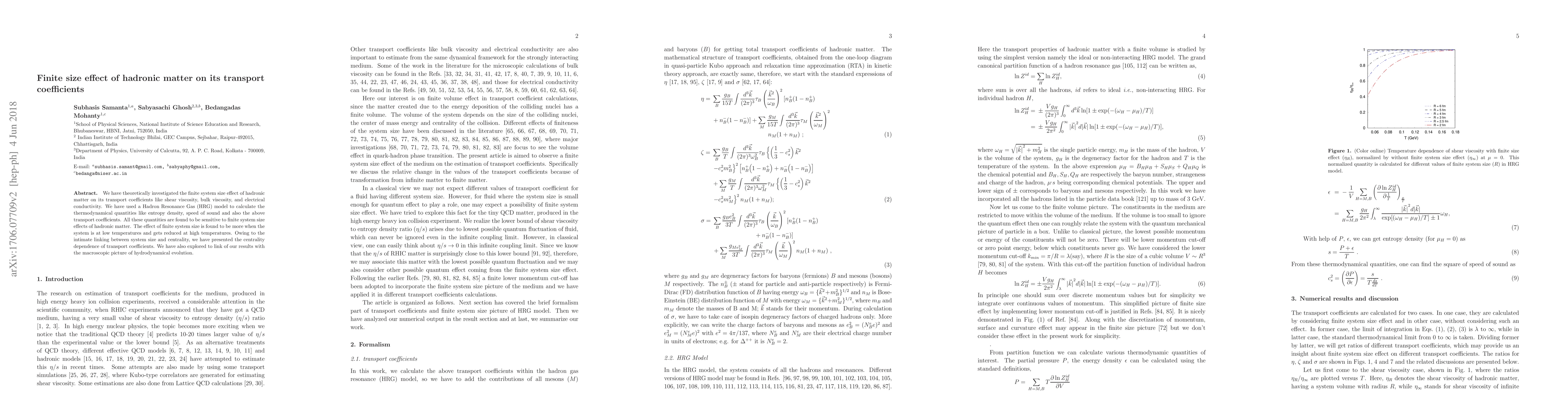 This paper investigates the impact of finite system size on the transport coefficients of hadronic matter using a Hadron Resonance Gas model, finding significant effects at low temperatures that diminish at high temperatures. The study also explores the centrality dependence and links these results to hydrodynamical evolution.