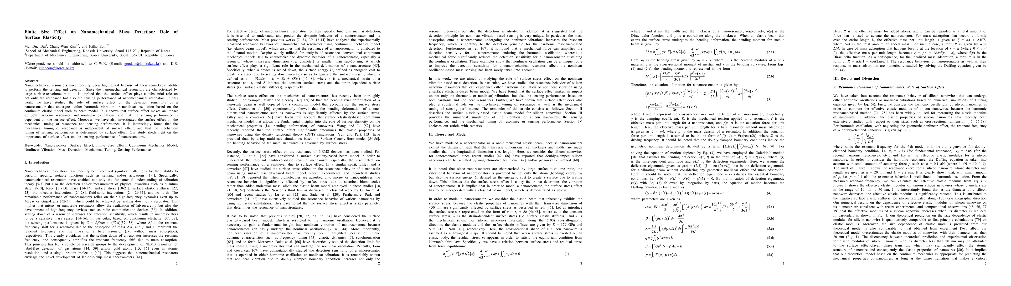 Nanomechanical resonators have recently been highlighted because of their remarkable ability to perform the sensing and detection. Since the nanomechanical resonators are characterized by large surface-to-volume ratio, it is implied that the surface effect plays a substantial role on not only the resonance but also the sensing performance of nanomechanical resonators. In this work, we have studied the role of surface effect on the detection sensitivity of a nanoresonator that undergoes either harmonic vibration or nonlinear oscillation based on the continuum elastic model such as beam model. It is shown that surface effect makes an impact on both harmonic resonance and nonlinear oscillations, and that the sensing performance is dependent on the surface effect. Moreover, we have also investigated the surface effect on the mechanical tuning of resonance and sensing performance. It is interestingly found that the mechanical tuning of resonance is independent of surface effect, and that the mechanical tuning of sensing performance is determined by surface effect. Our study sheds light on the importance of surface effect on the sensing performance of nanoresonators.
