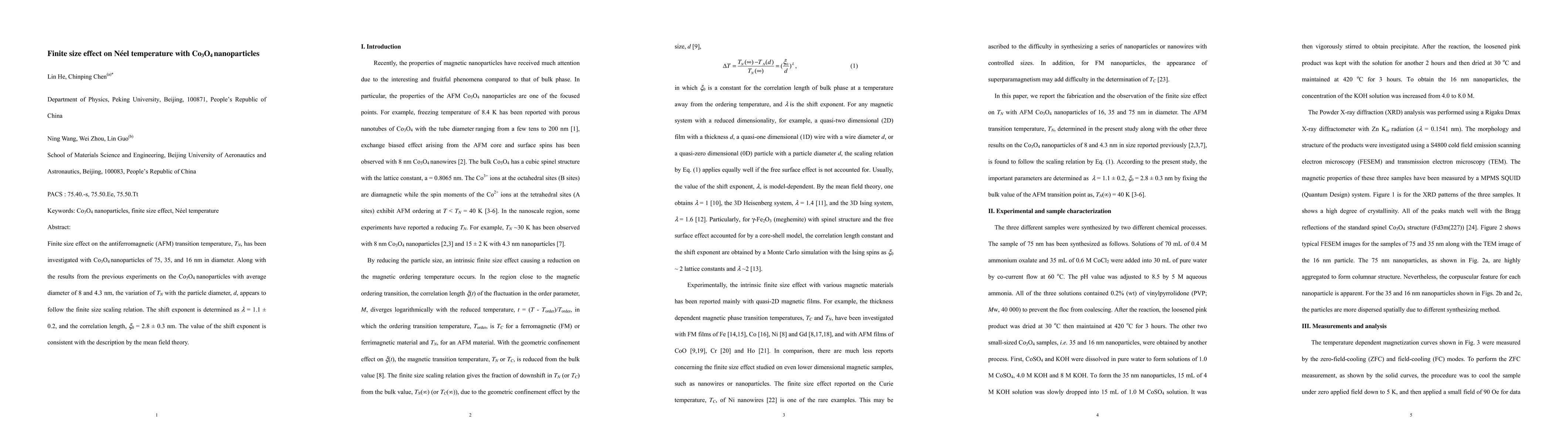 This study investigates the finite size effect on the Neel temperature (TN) of Co3O4 nanoparticles, finding that TN decreases with decreasing particle diameter. The scaling behavior reveals a shift exponent of λ = 1.4 ± 0.4, a correlation length of ξ0 = 3.0 ± 0.3 nm, and a bulk Neel temperature of TN(∞) = 38.6 ± 0.7 K.