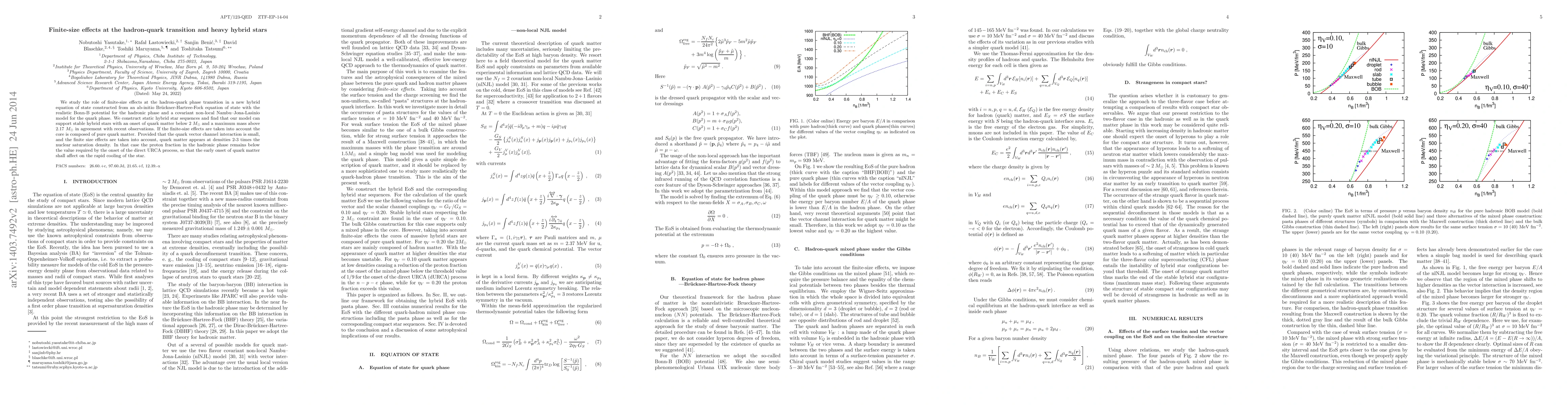 We study the role of finite-size effects at the hadron-quark phase transition in a new hybrid equation of state constructed from an ab-initio Br\"uckner-Hartree-Fock equation of state with the realistic Bonn-B potential for the hadronic phase and a covariant non-local Nambu--Jona-Lasinio model for the quark phase. We construct static hybrid star sequences and find that our model can support stable hybrid stars with an onset of quark matter below $2 M_\odot$ and a maximum mass above $2.17 M_\odot$ in agreement with recent observations. If the finite-size effects are taken into account the core is composed of pure quark matter. Provided that the quark vector channel interaction is small, and the finite size effects are taken into account, quark matter appears at densities 2-3 times the nuclear saturation density. In that case the proton fraction in the hadronic phase remains below the value required by the onset of the direct URCA process, so that the early onset of quark matter shall affect on the rapid cooling of the star.