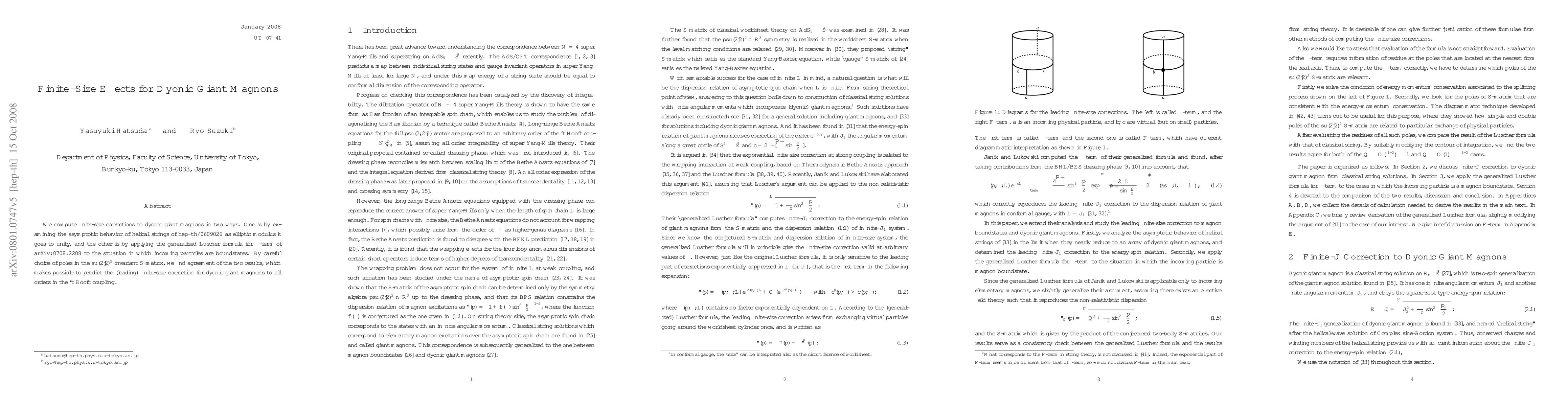 This paper computes finite-size corrections for dyonic giant magnons using two methods: analyzing helical strings' asymptotic behavior and applying the generalized Lüscher formula. Both approaches yield consistent results, enabling predictions of leading finite-size corrections for dyonic giant magnons at all orders in the 't Hooft coupling.