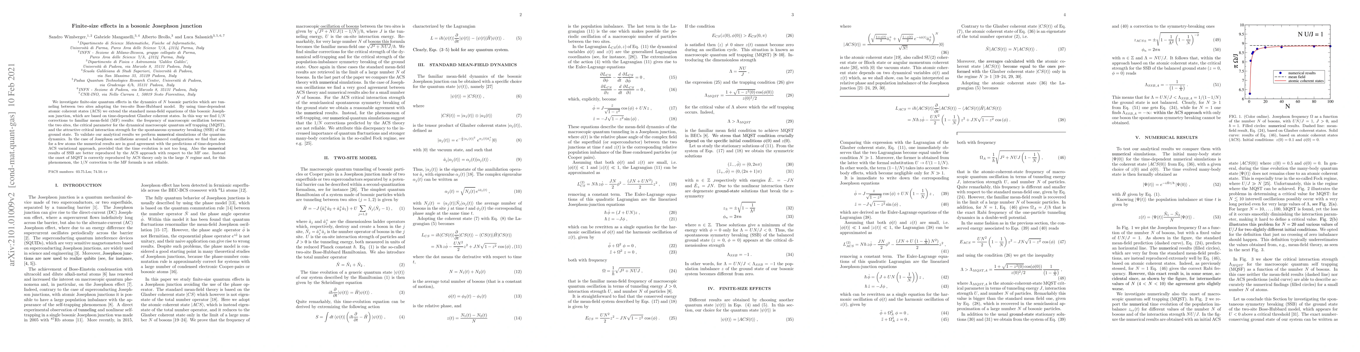 Researchers studied the behavior of bosonic particles in a Josephson junction with a finite number of particles, finding $1/N$ corrections to familiar mean-field results for macroscopic oscillations, symmetry breaking, and quantum self-trapping.