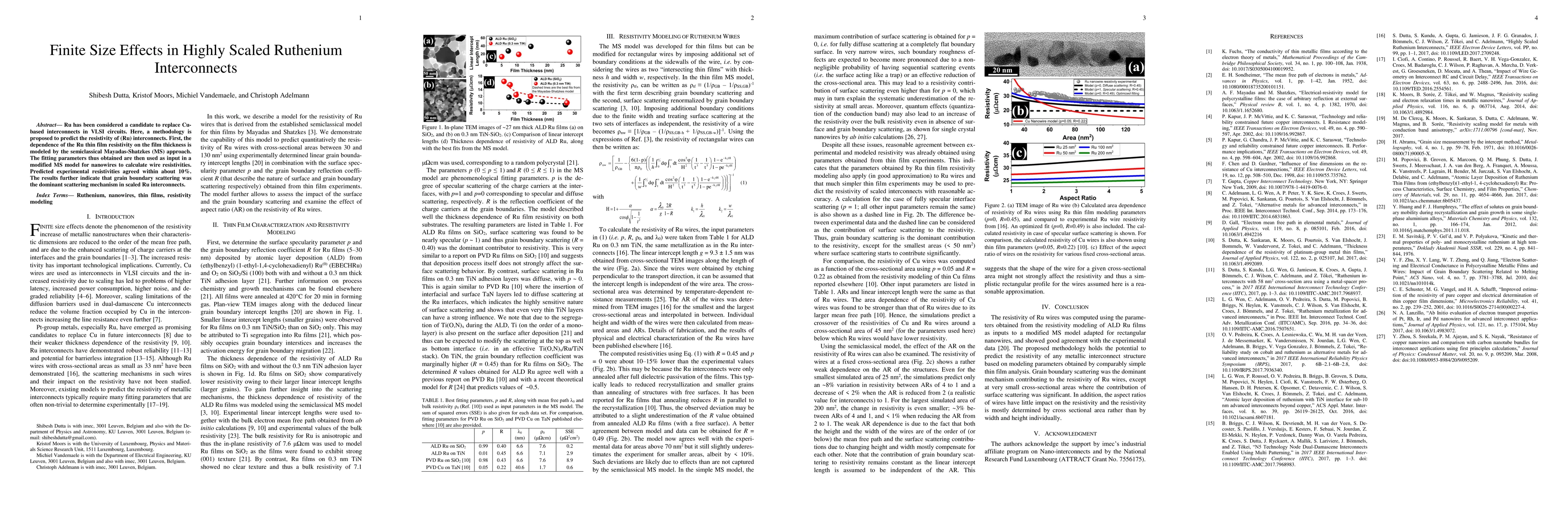 This paper proposes a methodology to predict the resistivity of ruthenium (Ru) interconnects, using the Mayadas-Shatzkes approach to model the dependence of thin film resistivity on thickness and grain boundary scattering as the dominant mechanism in scaled Ru interconnects. Experimental predictions align closely with actual measurements.