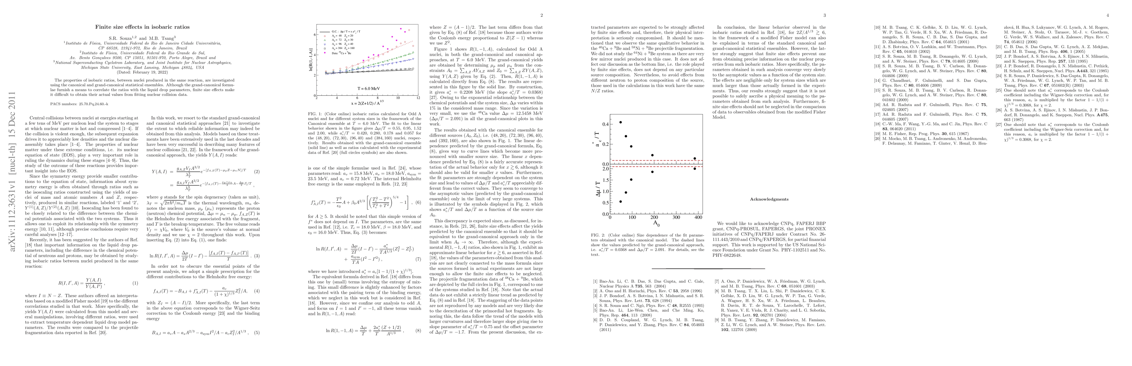 This paper investigates isobaric ratios using statistical ensembles, finding that while grand-canonical formulations correlate ratios with liquid drop parameters, finite size effects complicate the extraction of actual values from nuclear collision data.
