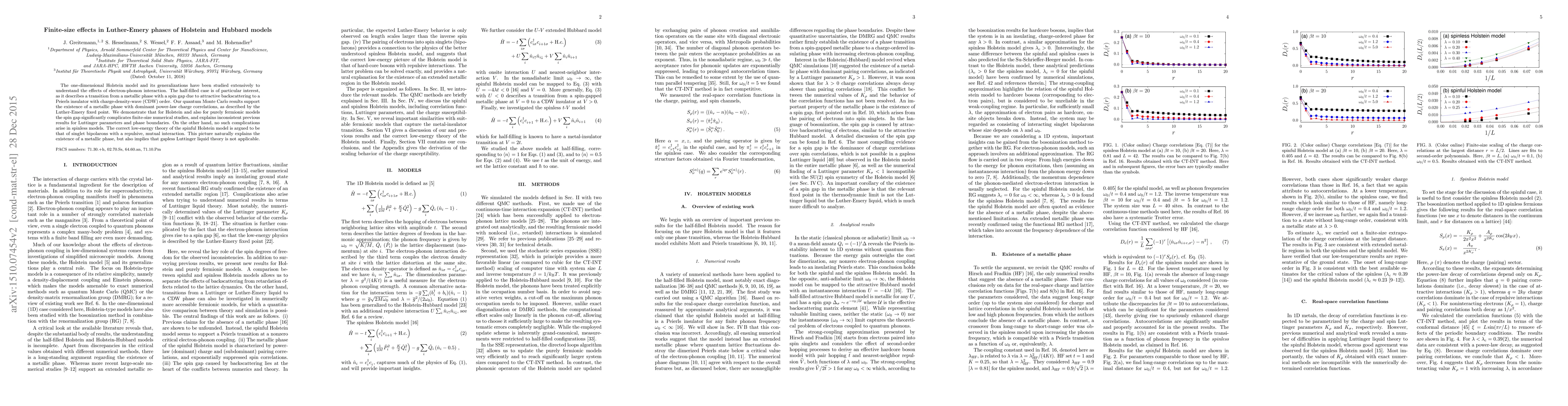 The one-dimensional Holstein model and its generalizations have been studied extensively to understand the effects of electron-phonon interaction. The half-filled case is of particular interest, as it describes a transition from a metallic phase with a spin gap due to attractive backscattering to a Peierls insulator with charge-density-wave (CDW) order. Our quantum Monte Carlo results support the existence of a metallic phase with dominant power-law charge correlations, as described by the Luther-Emery fixed point. We demonstrate that for Holstein and also for purely fermionic models the spin gap significantly complicates finite-size numerical studies, and explains inconsistent previous results for Luttinger parameters and phase boundaries. On the other hand, no such complications arise in spinless models. The correct low-energy theory of the spinful Holstein model is argued to be that of singlet bipolarons with a repulsive, mutual interaction. This picture naturally explains the existence of a metallic phase, but also implies that gapless Luttinger liquid theory is not applicable.