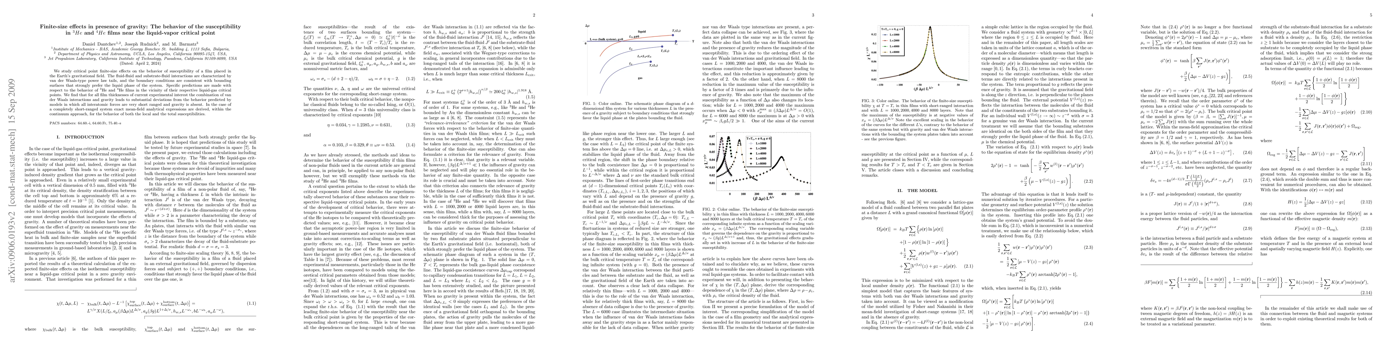 We study critical point finite-size effects on the behavior of susceptibility of a film placed in the Earth's gravitational field. The fluid-fluid and substrate-fluid interactions are characterized by van der Waals-type power law tails, and the boundary conditions are consistent with bounding surfaces that strongly prefer the liquid phase of the system. Specific predictions are made with respect to the behavior of $^3$He and $^4$He films in the vicinity of their respective liquid-gas critical points. We find that for all film thicknesses of current experimental interest the combination of van der Waals interactions and gravity leads to substantial deviations from the behavior predicted by models in which all interatomic forces are very short ranged and gravity is absent. In the case of a completely short-ranged system exact mean-field analytical expressions are derived, within the continuum approach, for the behavior of both the local and the total susceptibilities.