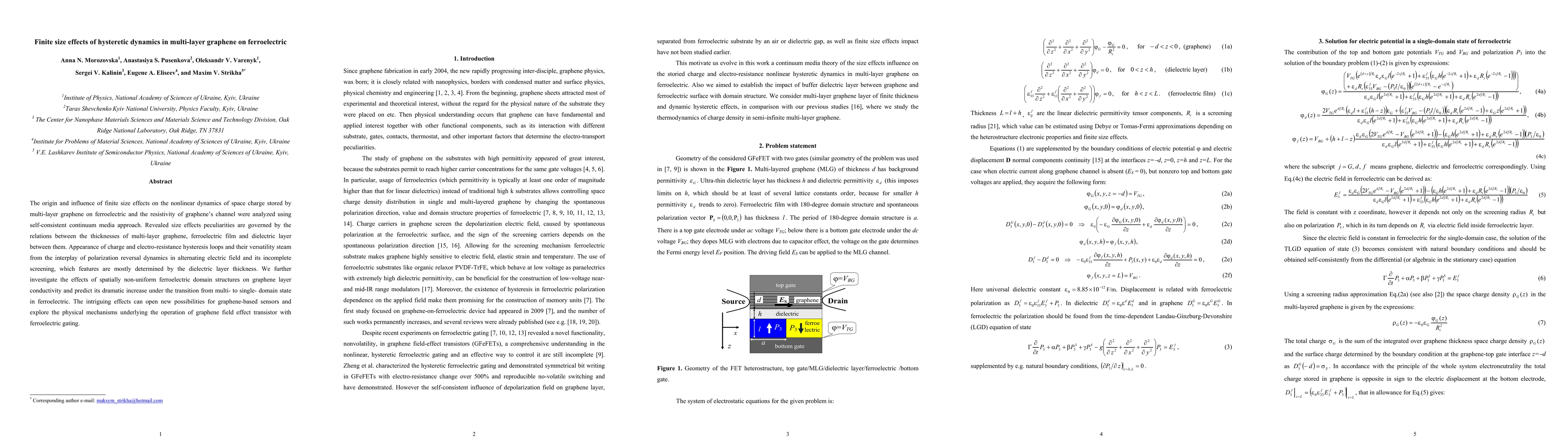 Summary: This research investigates the finite size effects on hysteretic dynamics in multi-layer graphene on ferroelectric substrates, revealing that thickness relations and dielectric layers significantly influence charge storage and resistivity. The study also predicts a dramatic increase in graphene conductivity under ferroelectric domain transitions, potentially advancing graphene-based sensor and transistor technologies.
