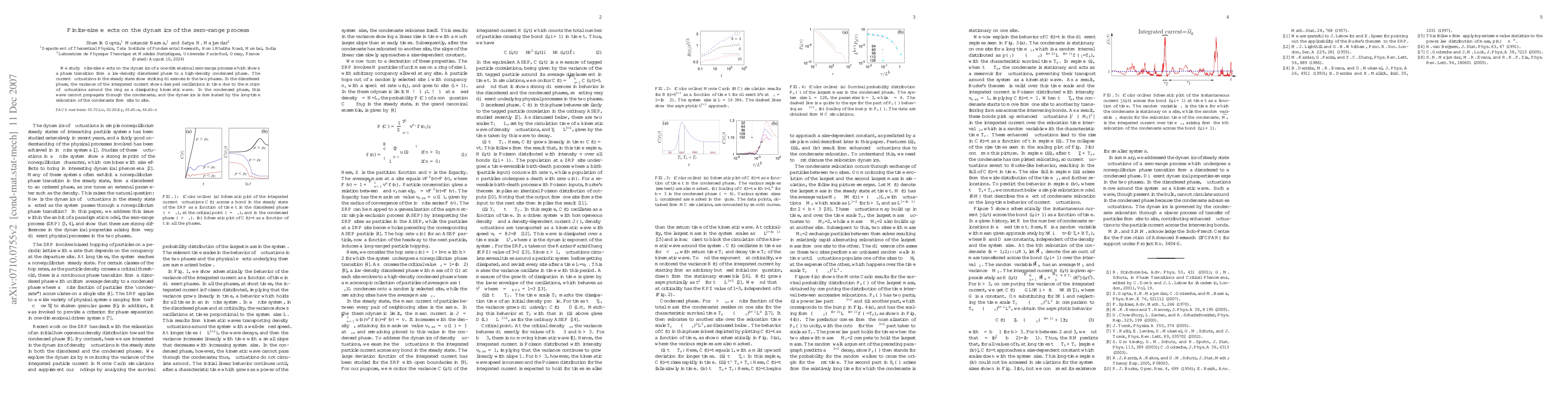 Researchers studied how fluctuations in a zero-range process behave at different densities, finding distinct patterns in time for low-density (disordered) and high-density (condensed) phases.