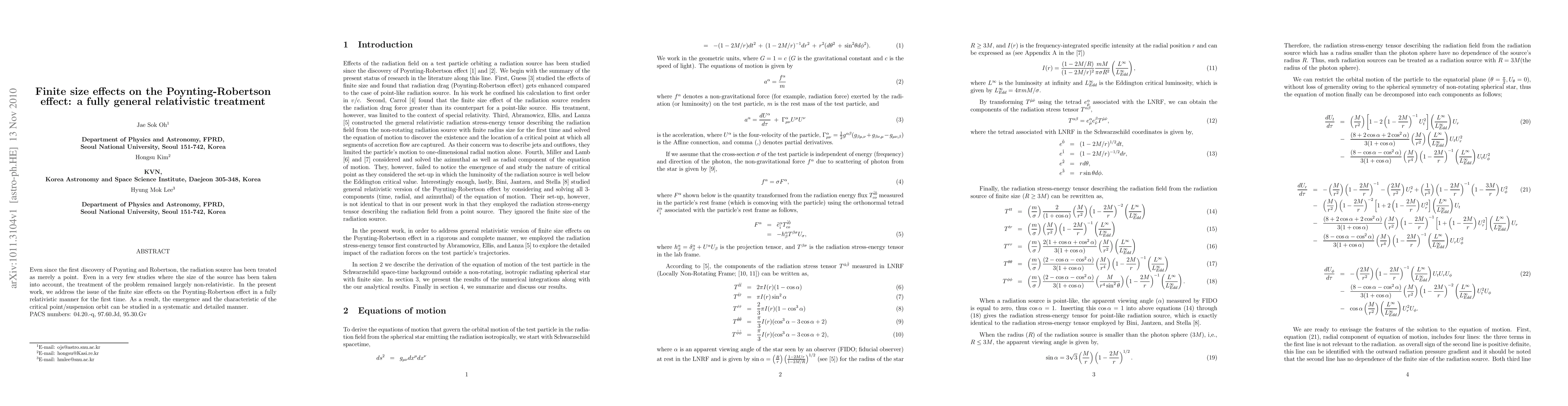 This paper provides a fully relativistic treatment of the Poynting-Robertson effect for finite-sized radiation sources, allowing for systematic study of critical points and suspension orbits. It addresses a long-standing limitation in the field by considering the size of the source.