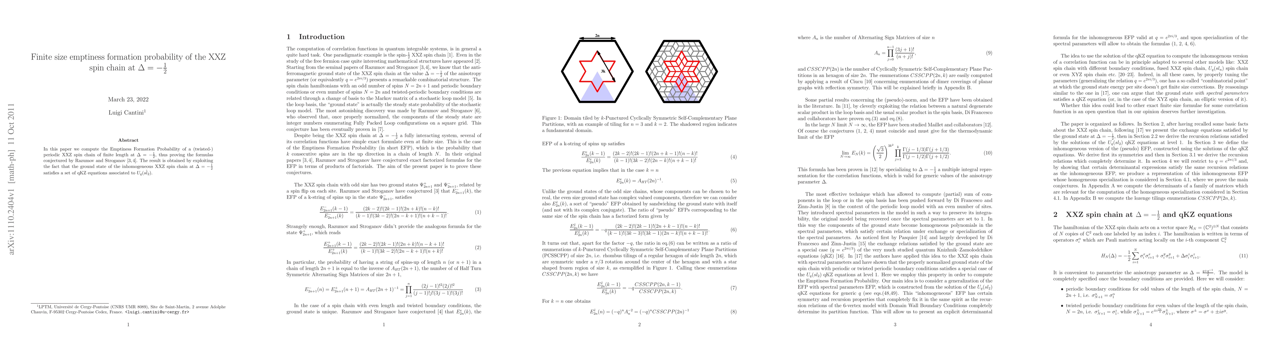 This paper calculates the Emptiness Formation Probability for a finite-length, twisted-periodic XXZ spin chain at $\Delta=-1/2$, verifying conjectured formulas by Razumov and Stroganov. The result is derived using qKZ equations associated with $U_q(\hat{sl_2})$.