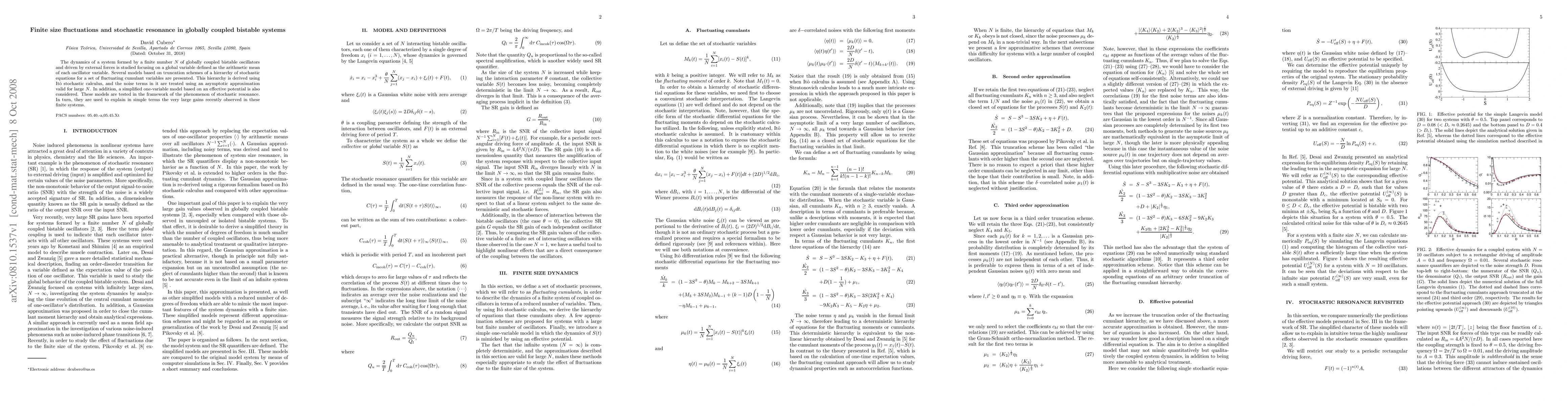 This paper explores the dynamics of globally coupled bistable oscillators, focusing on finite size fluctuations and stochastic resonance through models based on truncated stochastic equations and an effective potential. The study elucidates large observed gains in the system, linking them to stochastic resonance phenomena.