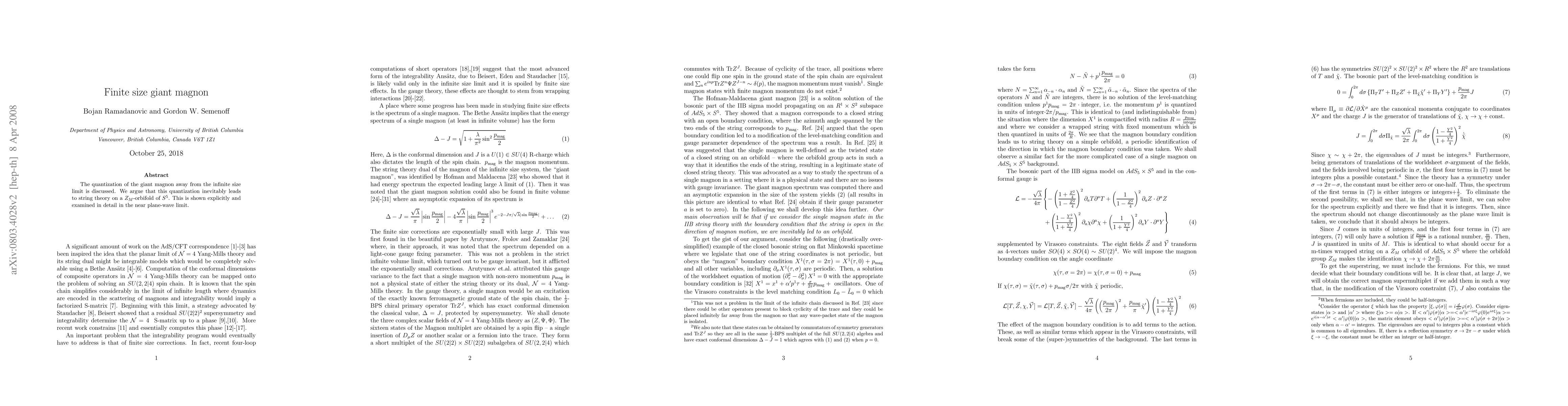 The quantization of the giant magnon away from the infinite size limit is discussed. We argue that this quantization inevitably leads to string theory on a Z_M-orbifold of S^5. This is shown explicitly and examined in detail in the near plane-wave limit.