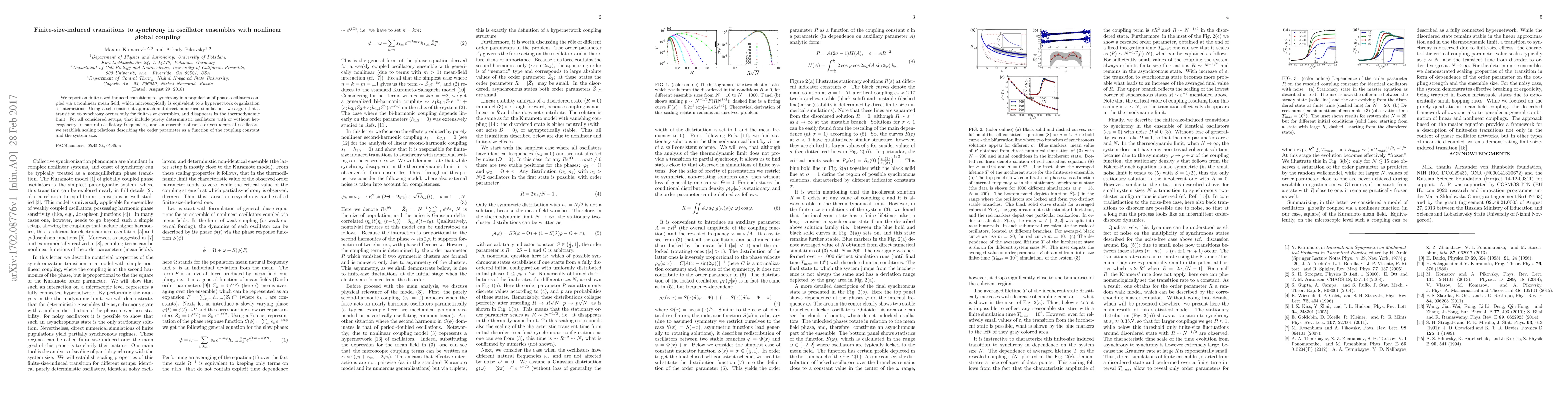 This paper explores how finite-size effects lead to transitions to synchrony in ensembles of nonlinearly coupled phase oscillators, demonstrating that such transitions vanish in the thermodynamic limit. It establishes scaling relations for the order parameter based on coupling strength and system size across various oscillator setups.