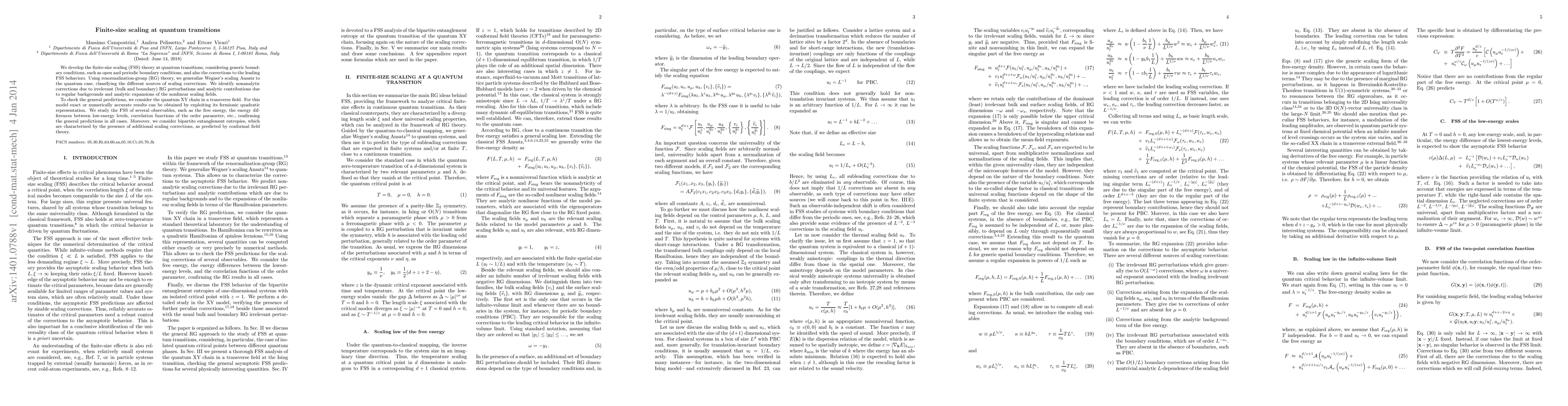 This paper develops a finite-size scaling theory for quantum phase transitions, classifying scaling corrections and applying renormalization-group methods. It confirms predictions using the quantum XY chain, showing agreement with theoretical predictions for various observables and identifying additional scaling corrections in bipartite entanglement entropies.