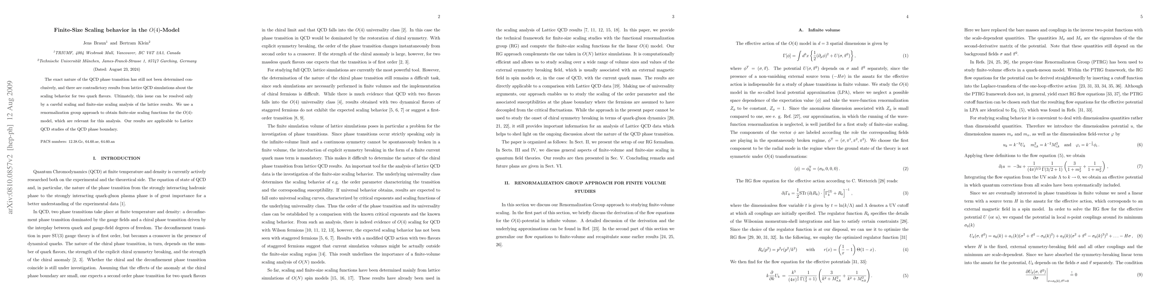 The exact nature of the QCD phase transition has still not been determined conclusively, and there are contradictory results from lattice QCD simulations about the scaling behavior for two quark flavors. Ultimately, this issue can be resolved only by a careful scaling and finite-size scaling analysis of the lattice results. We use a renormalization group approach to obtain finite-size scaling functions for the O(4)-model, which are relevant for this analysis. Our results are applicable to Lattice QCD studies of the QCD phase boundary.
