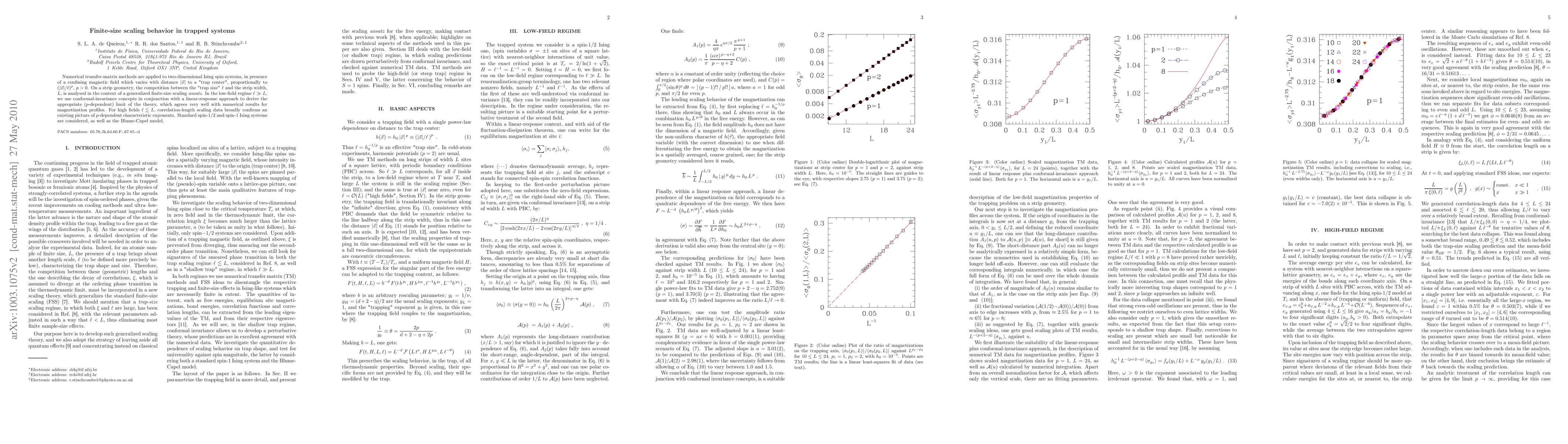 Numerical transfer-matrix methods are applied to two-dimensional Ising spin systems, in presence of a confining magnetic field which varies with distance $|{\vec x}|$ to a "trap center", proportionally to $(|{\vec x}|/\ell)^p$, $p>0$. On a strip geometry, the competition between the "trap size" $\ell$ and the strip width, $L$, is analysed in the context of a generalized finite-size scaling {\em ansatz}. In the low-field regime $\ell \gg L$, we use conformal-invariance concepts in conjunction with a linear-response approach to derive the appropriate ($p$-dependent) limit of the theory, which agrees very well with numerical results for magnetization profiles. For high fields $\ell \lesssim L$, correlation-length scaling data broadly confirms an existing picture of $p$-dependent characteristic exponents. Standard spin-1/2 and spin-1 Ising systems are considered, as well as the Blume-Capel model.