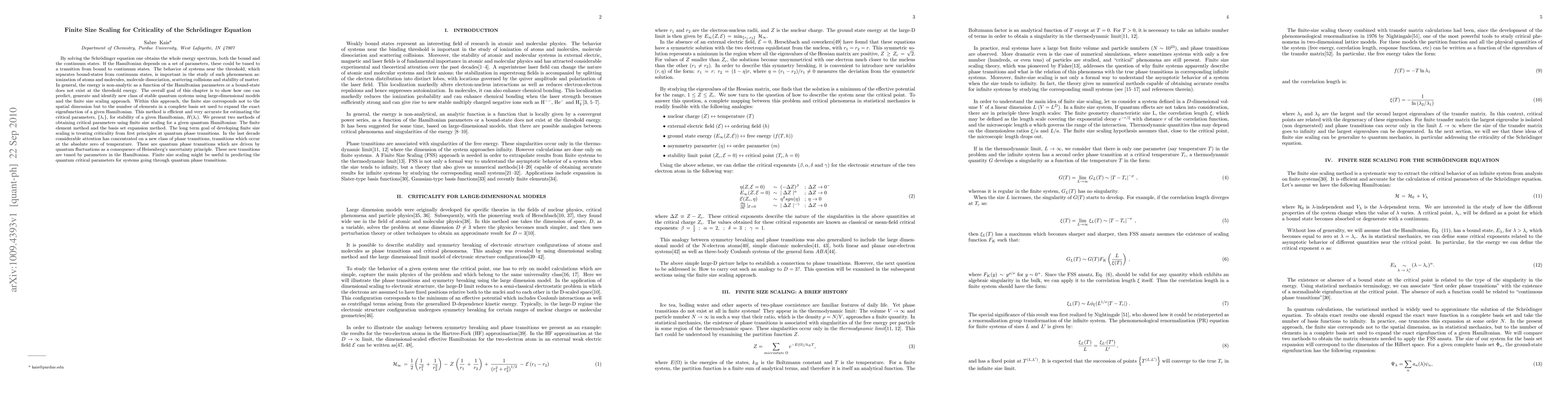 This paper explores the finite size scaling approach to predict and identify stable quantum systems near the threshold between bound and continuum states in the Schrödinger equation. It introduces two methods—the finite element method and the basis set expansion method—to determine critical parameters for Hamiltonian stability.