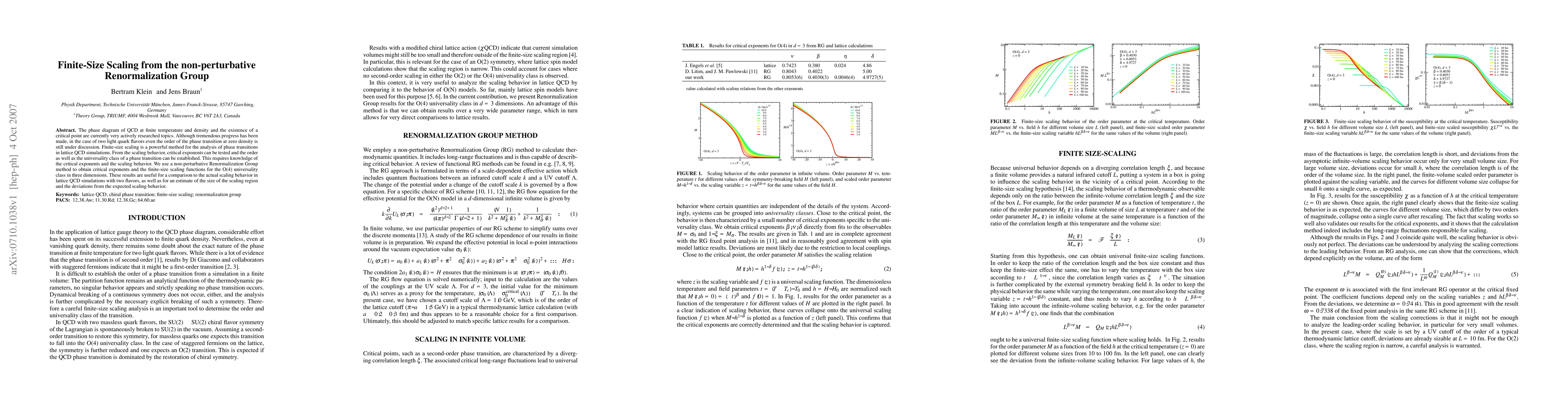 The phase diagram of QCD at finite temperature and density and the existence of a critical point are currently very actively researched topics. Although tremendous progress has been made, in the case of two light quark flavors even the order of the phase transition at zero density is still under discussion. Finite-size scaling is a powerful method for the analysis of phase transitions in lattice QCD simulations. From the scaling behavior, critical exponents can be tested and the order as well as the universality class of a phase transition can be established. This requires knowledge of the critical exponents and the scaling behavior. We use a non-perturbative Renormalization Group method to obtain critical exponents and the finite-size scaling functions for the O(4) universality class in three dimensions. These results are useful for a comparison to the actual scaling behavior in lattice QCD simulations with two flavors, as well as for an estimate of the size of the scaling region and the deviations from the expected scaling behavior.