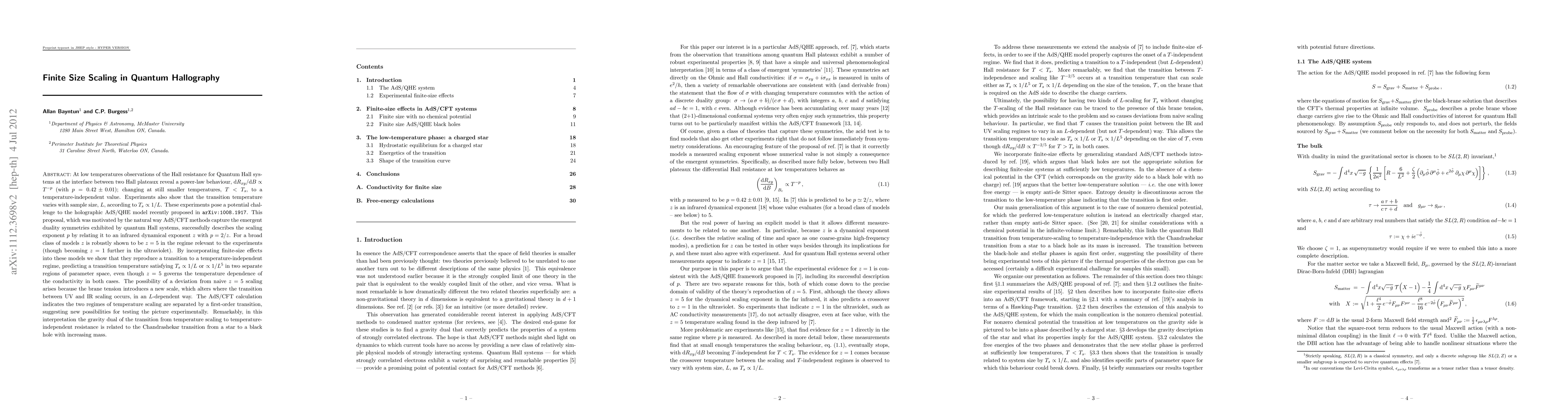 At low temperatures observations of the Hall resistance for Quantum Hall systems at the interface between two Hall plateaux reveal a power-law behaviour, dR_xy/dB ~ T^(-p) (with p = 0.42 +/- 0.01); changing at still smaller temperatures, T < T_s, to a temperature-independent value. Experiments also show that the transition temperature varies with sample size, L, according to T_s ~ 1/L. These experiments pose a potential challenge to the holographic AdS/QHE model recently proposed in arXiv:1008.1917. This proposal, which was motivated by the natural way AdS/CFT methods capture the emergent duality symmetries exhibited by quantum Hall systems, successfully describes the scaling exponent p by relating it to an infrared dynamical exponent z with p = 2/z. For a broad class of models z is robustly shown to be z = 5 in the regime relevant to the experiments (though becoming z = 1 further in the ultraviolet). By incorporating finite-size effects into these models we show that they reproduce a transition to a temperature-independent regime, predicting a transition temperature satisfying T_s ~ 1/L or ~ 1/L^5 in two separate regions of parameter space, even though z = 5 governs the temperature dependence of the conductivity in both cases. The possibility of a deviation from naive z = 5 scaling arises because the brane tension introduces a new scale, which alters where the transition between UV and IR scaling occurs, in an L-dependent way. The AdS/CFT calculation indicates the two regimes of temperature scaling are separated by a first-order transition, suggesting new possibilities for testing the picture experimentally. Remarkably, in this interpretation the gravity dual of the transition from temperature scaling to temperature-independent resistance is related to the Chandrashekar transition from a star to a black hole with increasing mass.