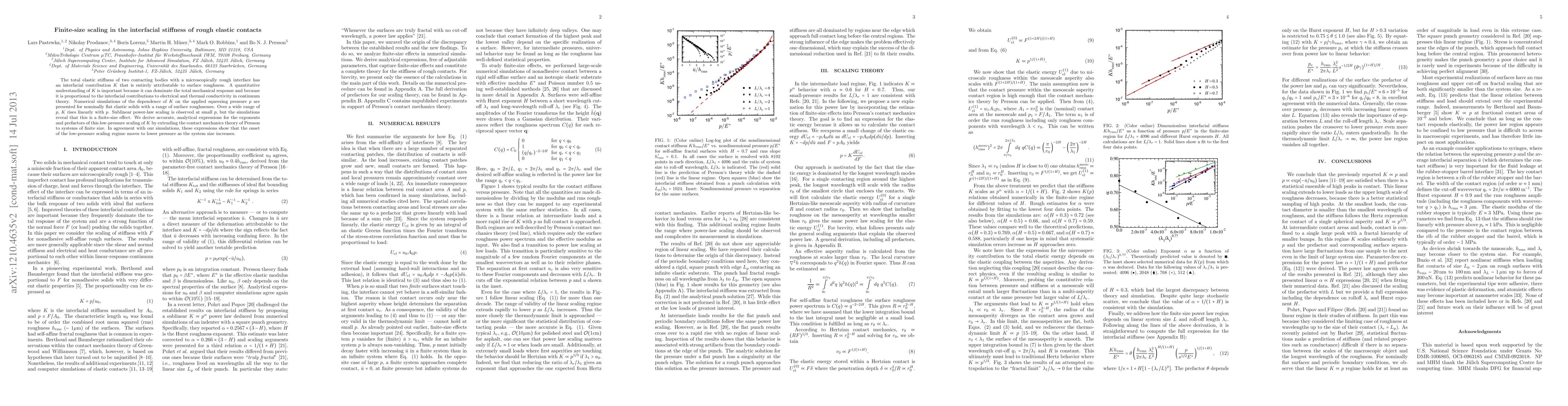 The interfacial stiffness of rough elastic contacts rises linearly with applied pressure over a wide range, but exhibits sublinear power-law scaling at low pressures, which is attributed to finite-size effects.