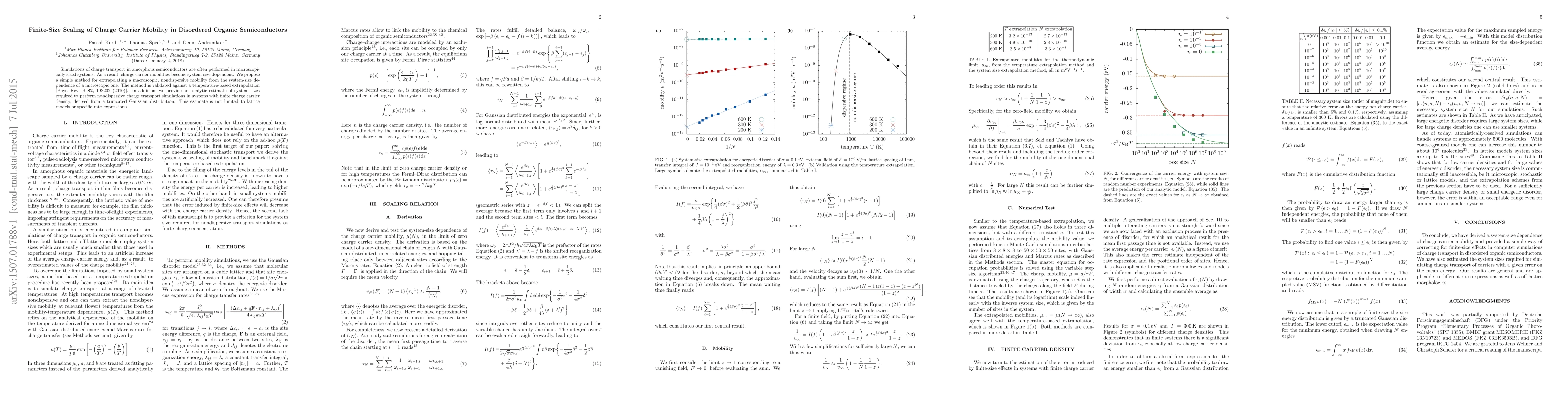 This paper proposes a method for extrapolating macroscopic charge carrier mobility from microscopic simulations in disordered organic semiconductors, validated against existing temperature-based extrapolation techniques. Additionally, it provides an analytic estimate for the required system sizes to achieve nondispersive transport, applicable to various models and rate expressions.