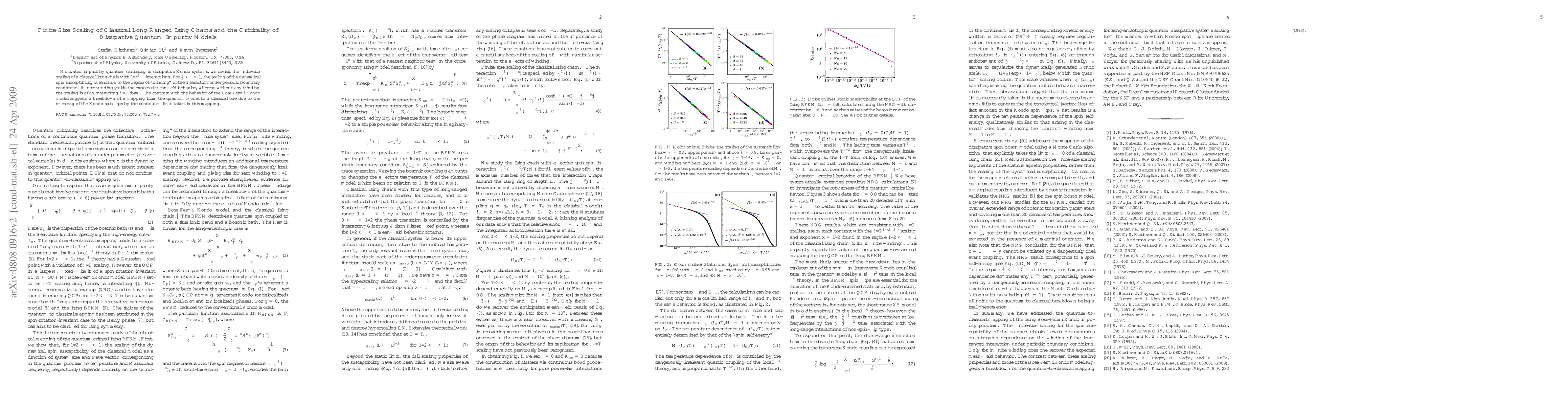 This paper examines the finite-size scaling of classical long-ranged Ising chains and finds that the dynamical spin susceptibility's behavior depends on the interaction's "winding" under periodic boundary conditions. The study contrasts classical scaling with quantum impurity models, suggesting a failure in mapping quantum behavior to classical due to the continuum limit's effect on Kondo spin flips.
