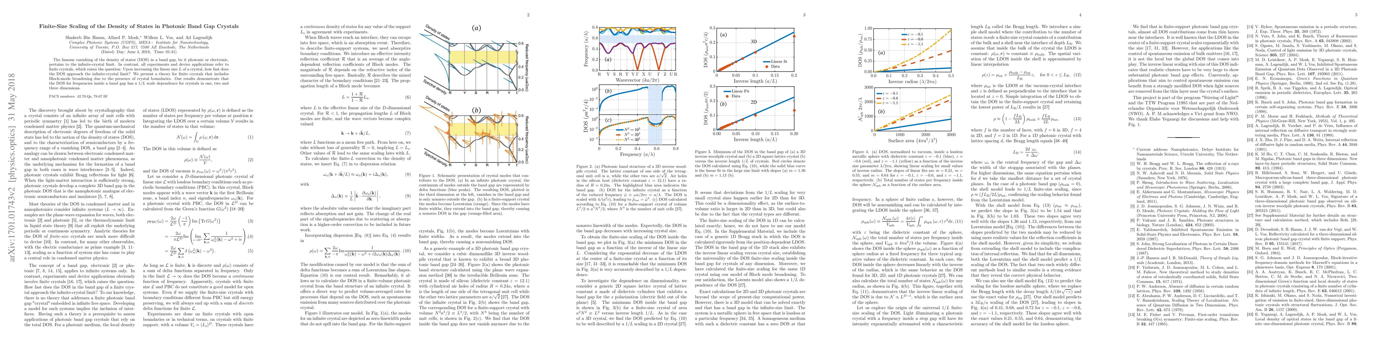 The famous vanishing of the density of states (DOS) in a band gap, be it photonic or electronic, pertains to the infinite-crystal limit. In contrast, all experiments and device applications refer to finite crystals, which raises the question: Upon increasing the linear size $L$ of a crystal, how fast does the DOS approach the infinite-crystal limit? We present a theory for finite crystals that includes Bloch-mode broadening due to the presence of crystal boundaries. Our results demonstrate that the DOS for frequencies inside a band gap has a $1/L$ scale dependence for crystals in one, two and three dimensions.